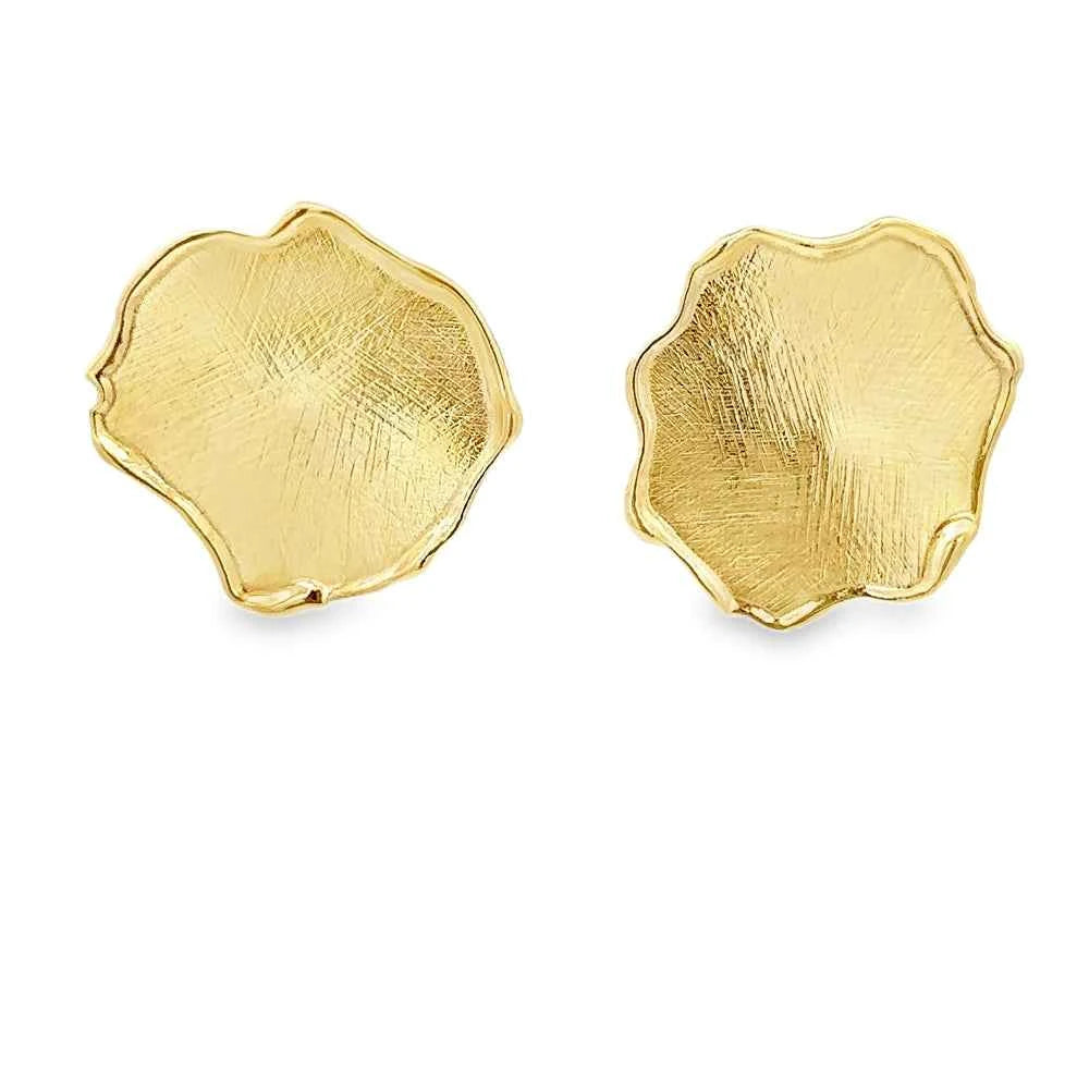 Италиански сребърни обеци с позлата и органична форма, вдъхновена от листенцата на Paliurus. Изработени с фина сатенена текстура и закопчаване на щифт.