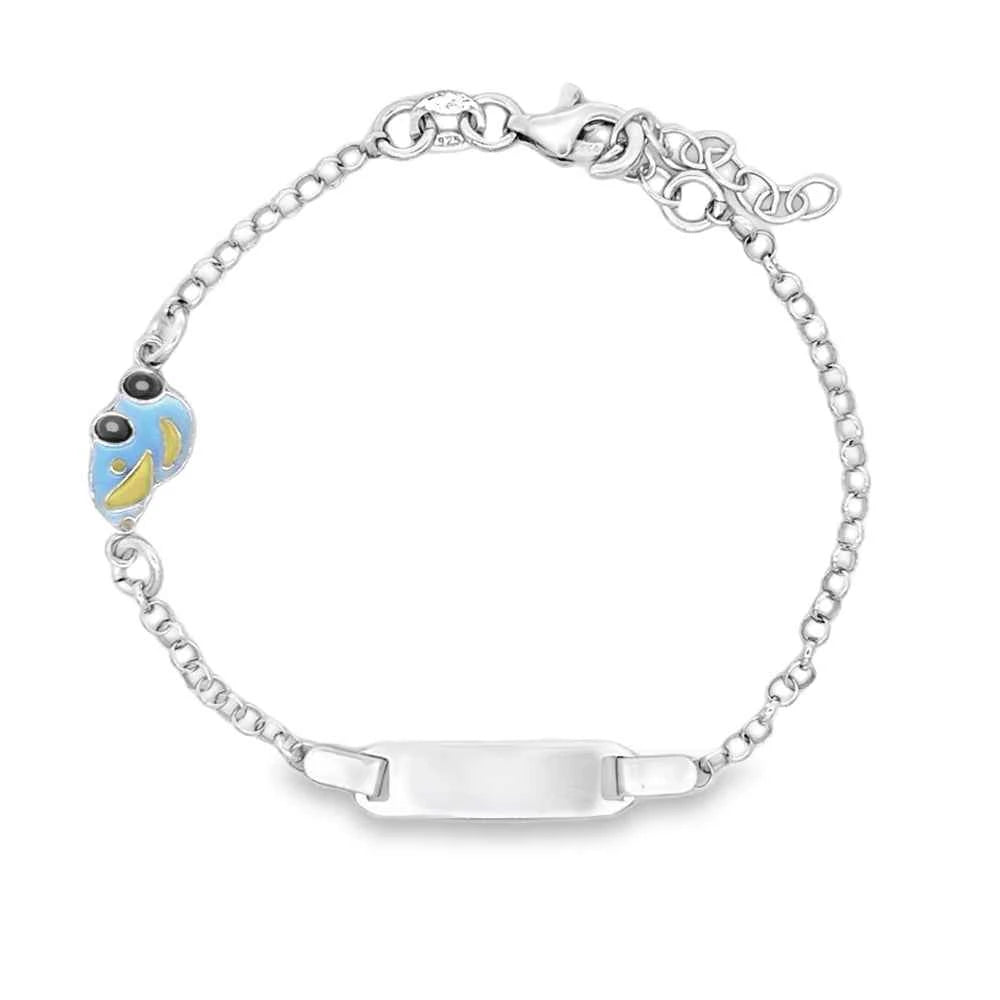 Тази сребърна гривна е създадена с мисъл за най-специалните малки ръчички. Симпатичната кола с емайл в синьо и жълто внася закачливо настроение, а гладката плочка в центъра може да бъде гравирана с име, дата или мило послание. Изработена от сребро 925 с родиево покритие за устойчивост и защита, гривната има регулируема дължина, която я прави подходяща както за бебче, така и за пораснало момченце.