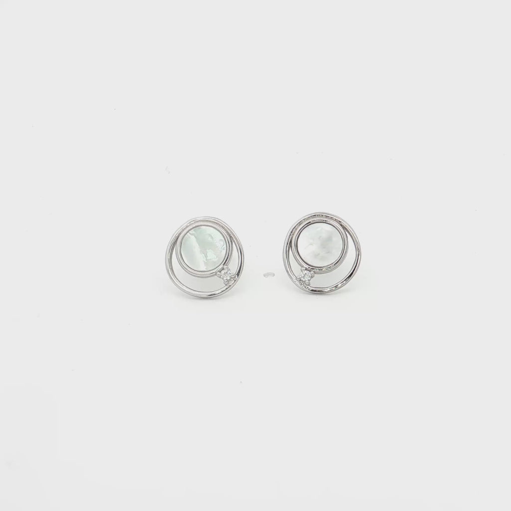 Кръгли сребърни обеци с естествен седеф и кубичен цирконий.