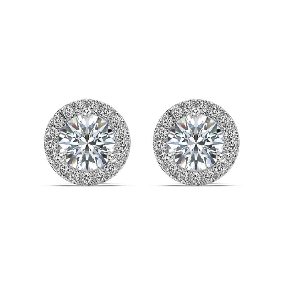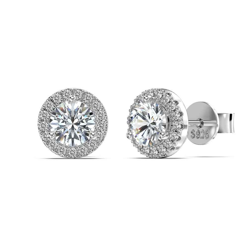Сребърни обеци с мойсанит в ореол от цирконии – ярък, модерен блясък и изтънчен стил за всеки повод.