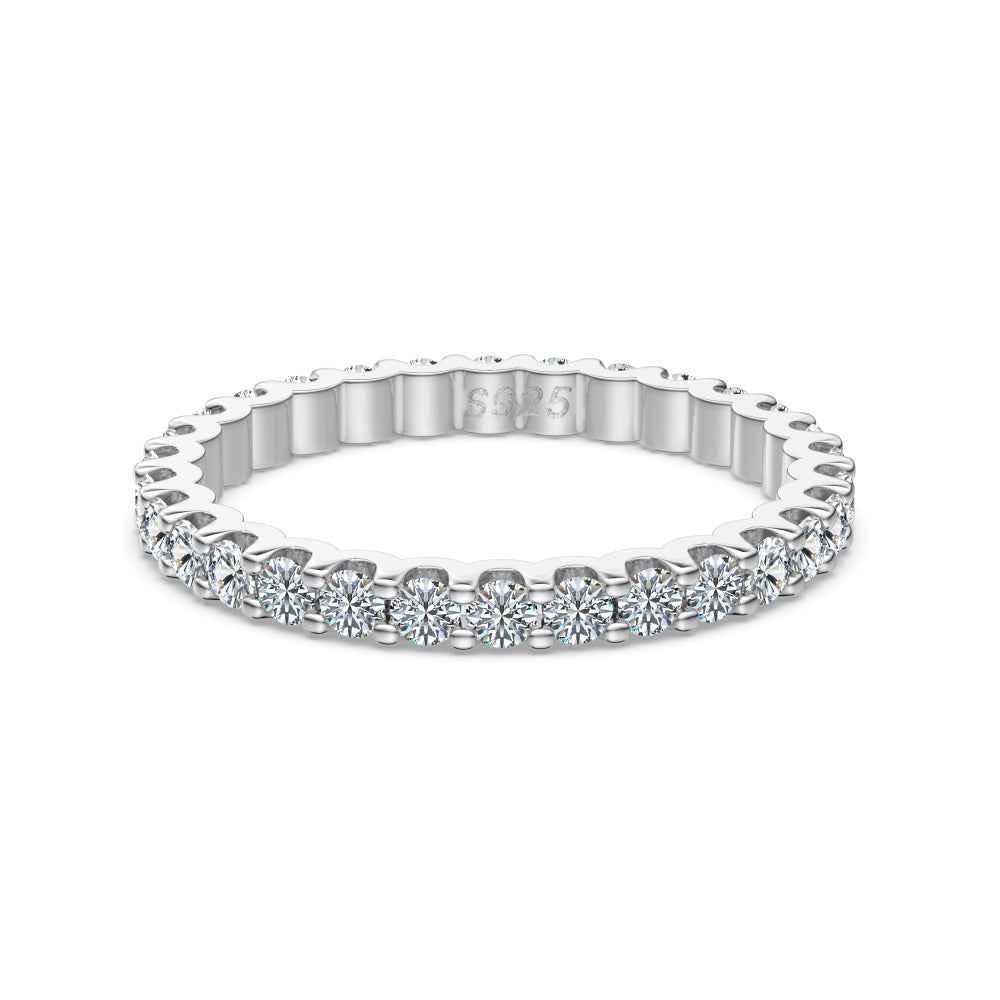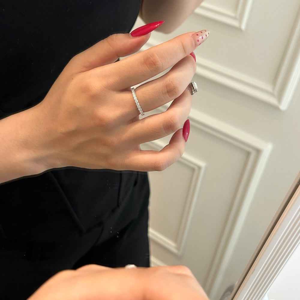 Сребърен пръстен Line Eternity – фина линия от блестящи камъни за модерен, изчистен и елегантен стил. Перфектен за ежедневно носене и специални поводи.