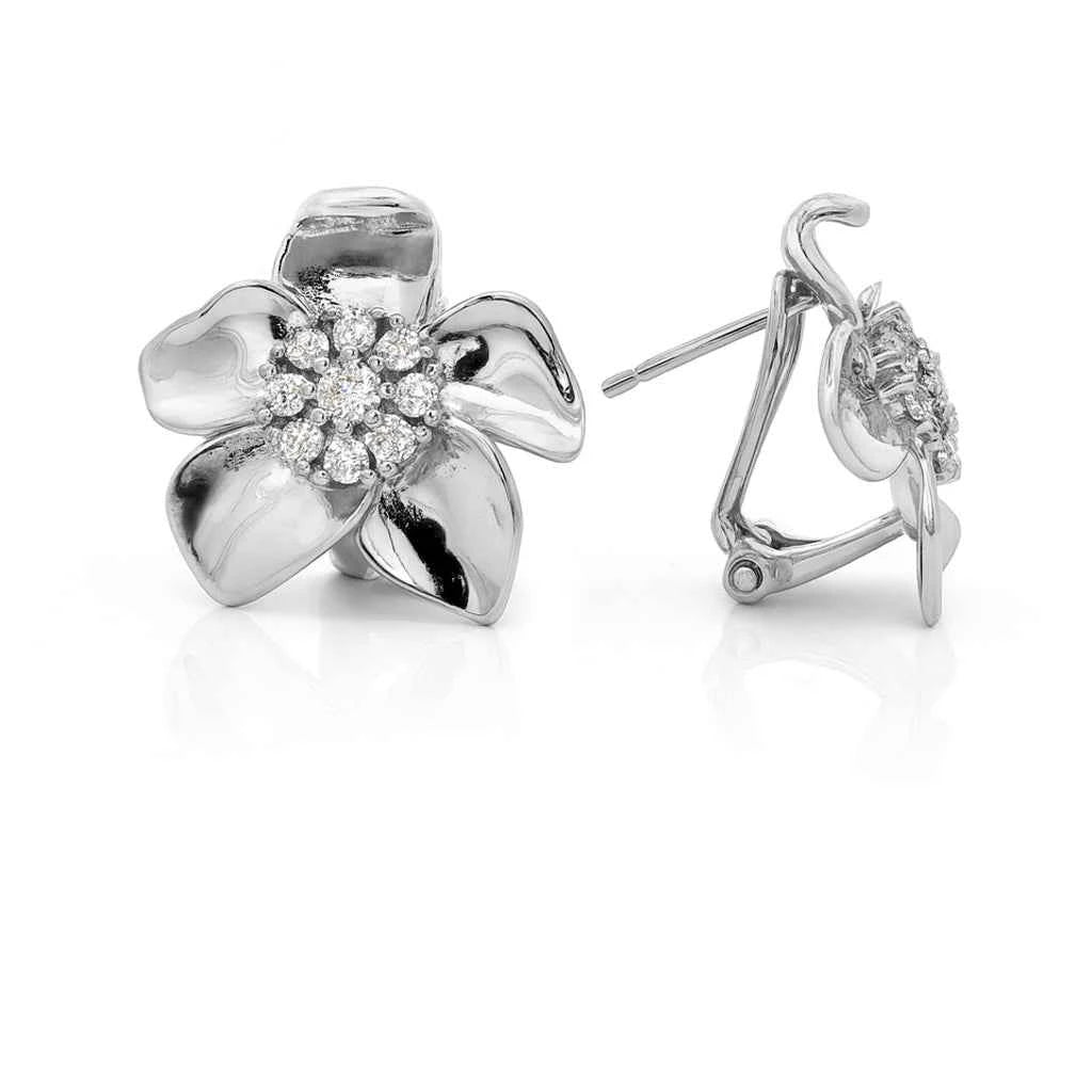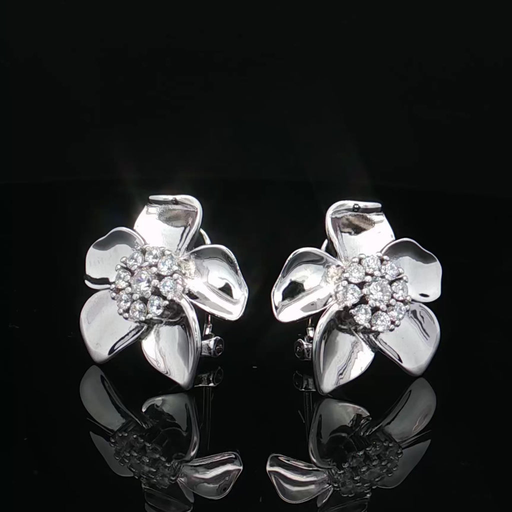 Сребърни обеци с флорален дизайн – елегантно бижу с ярко излъчване и удобно френско закопчаване на клипс.