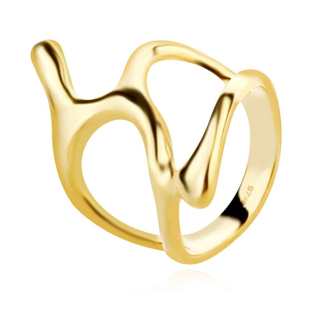 Модерен абстрактен дизайн, красива изработка, позлата и блестяща повърхност, която отразява светлината с всяко движение… Сребърен пръстен, с който ще допълните всяка модерна визия.