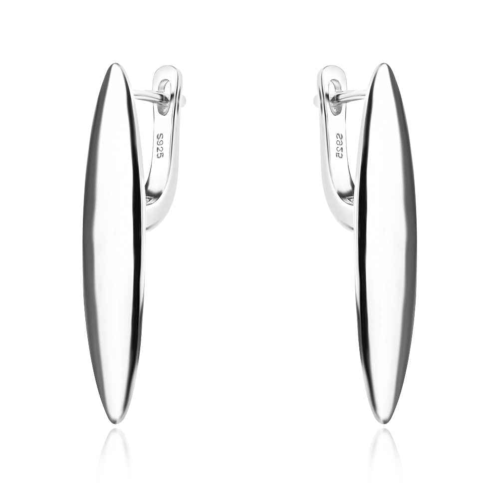 Сребърни обеци с изчистен класически дизайн, перфектна полировка и родиево покритие. Перфектно допълнение към елегантна градска визия. Обеците са с удобно английско закопчаване.