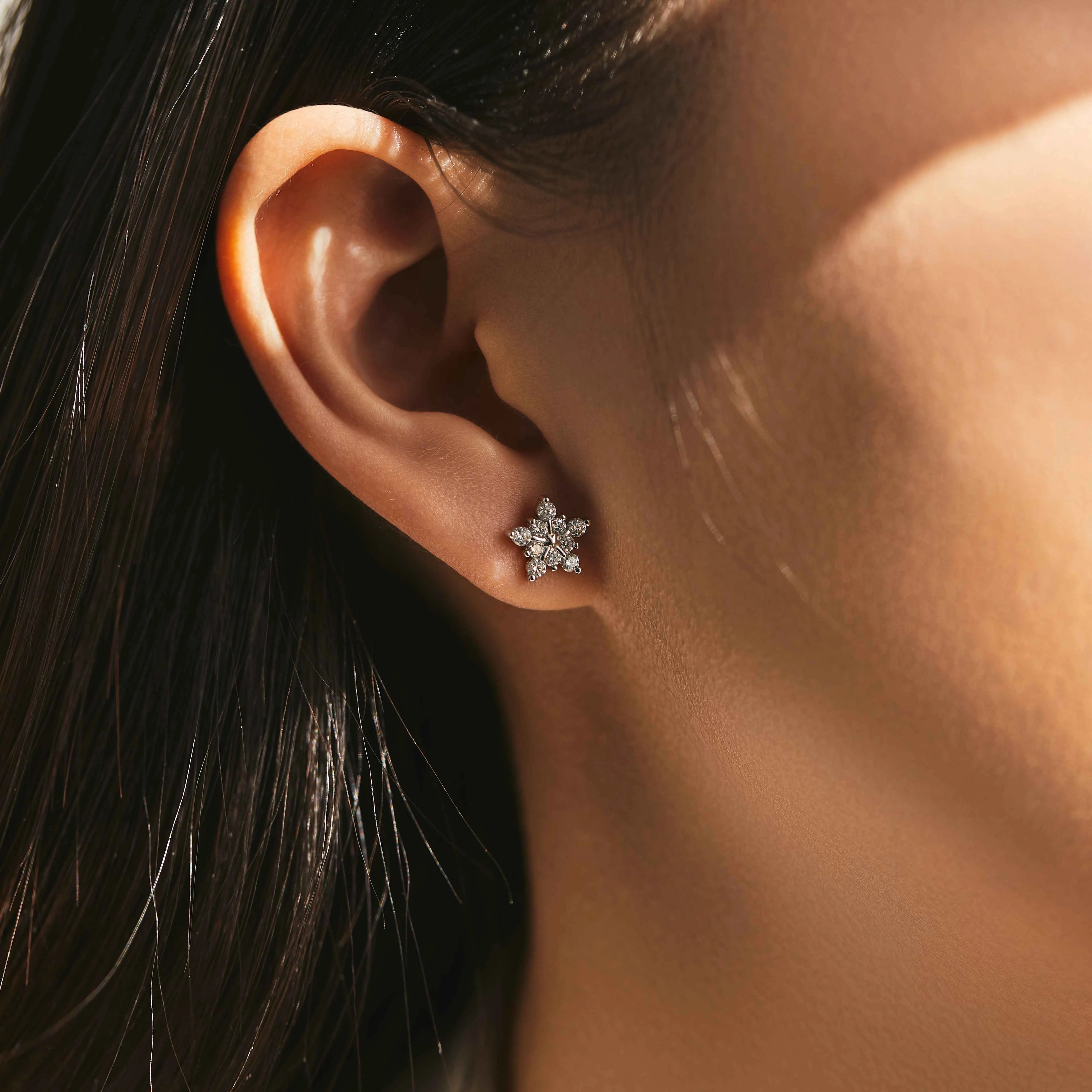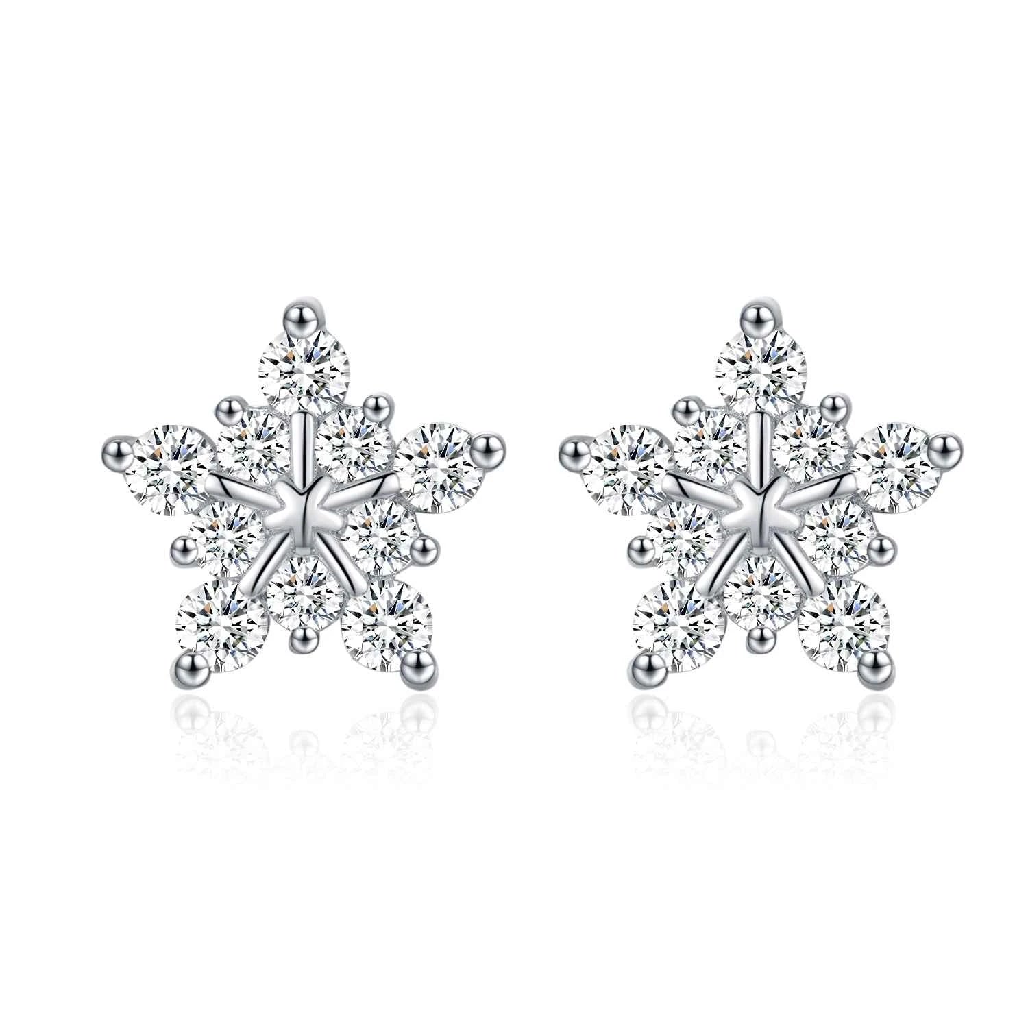 Сребърни обеци снежинки с мойсанит – празничен блясък и зимно настроение, подходящи за сезонен подарък.