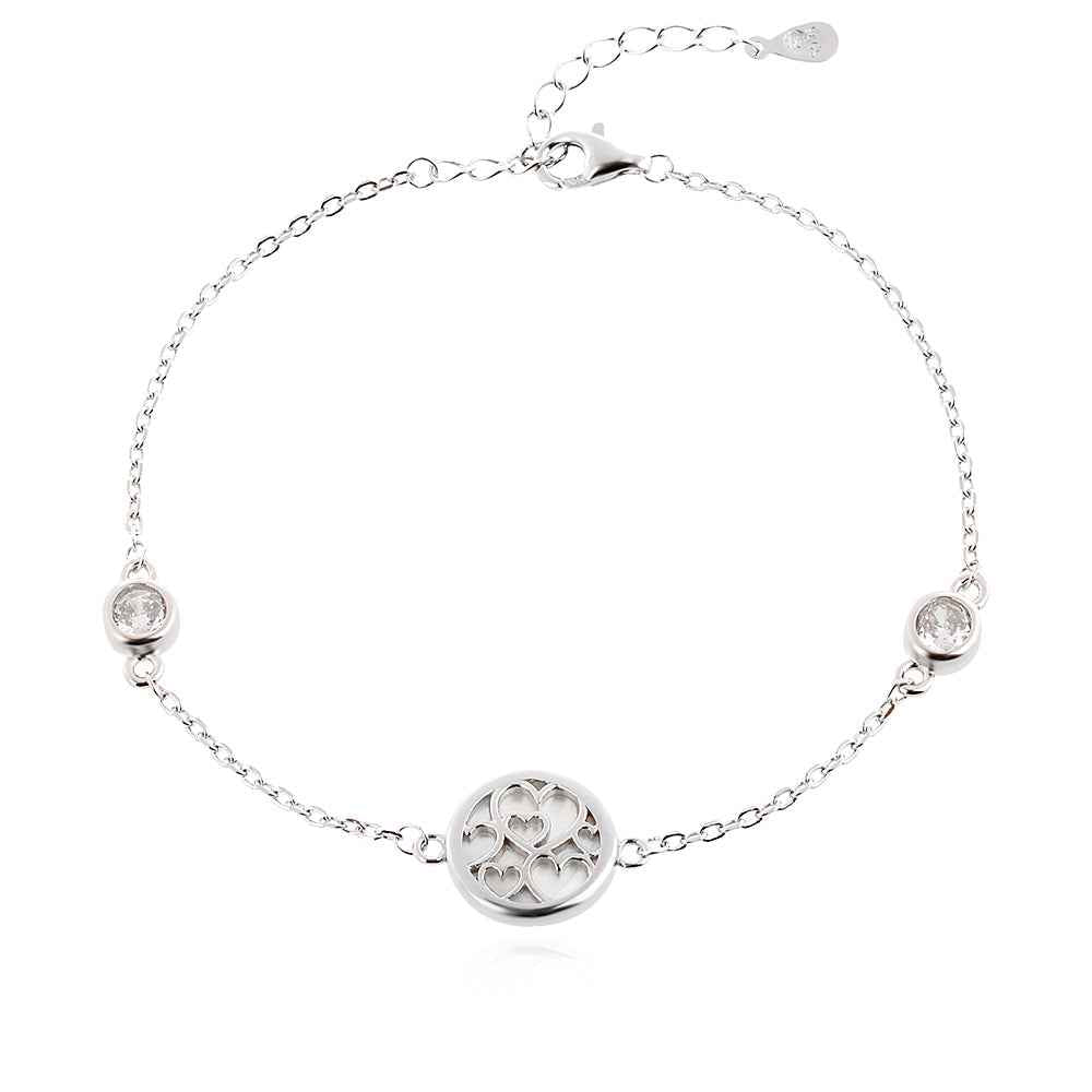 Заяви любовта с тази нежна символична сребърна гривна със сърца. Бижуто е с родиево покритие, което предпазва среброто от оксидация и запазва блясъка на бижуто.