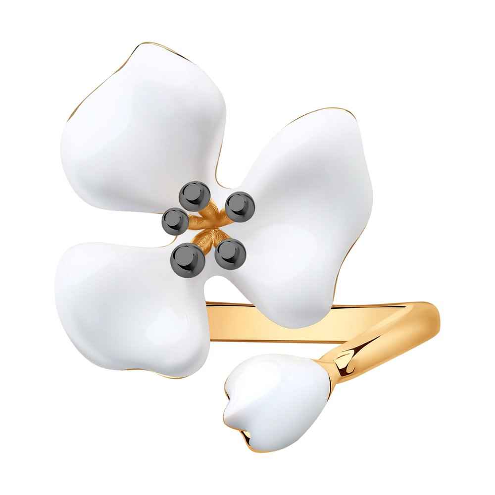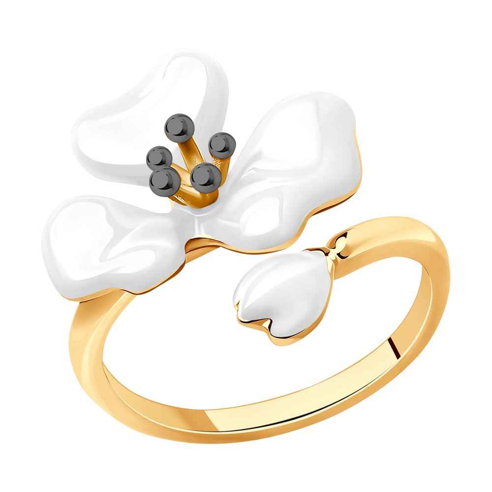 Нежен сребърен пръстен с ръчно рисуван бял емайл, тичинки от черен рутений и прецизна розова позлата. Малък изящен детайл, с който да разнообразите всяка семпла визия. Пръстенът е с отворена халка и позволява лека корекция с до 1 размер.
