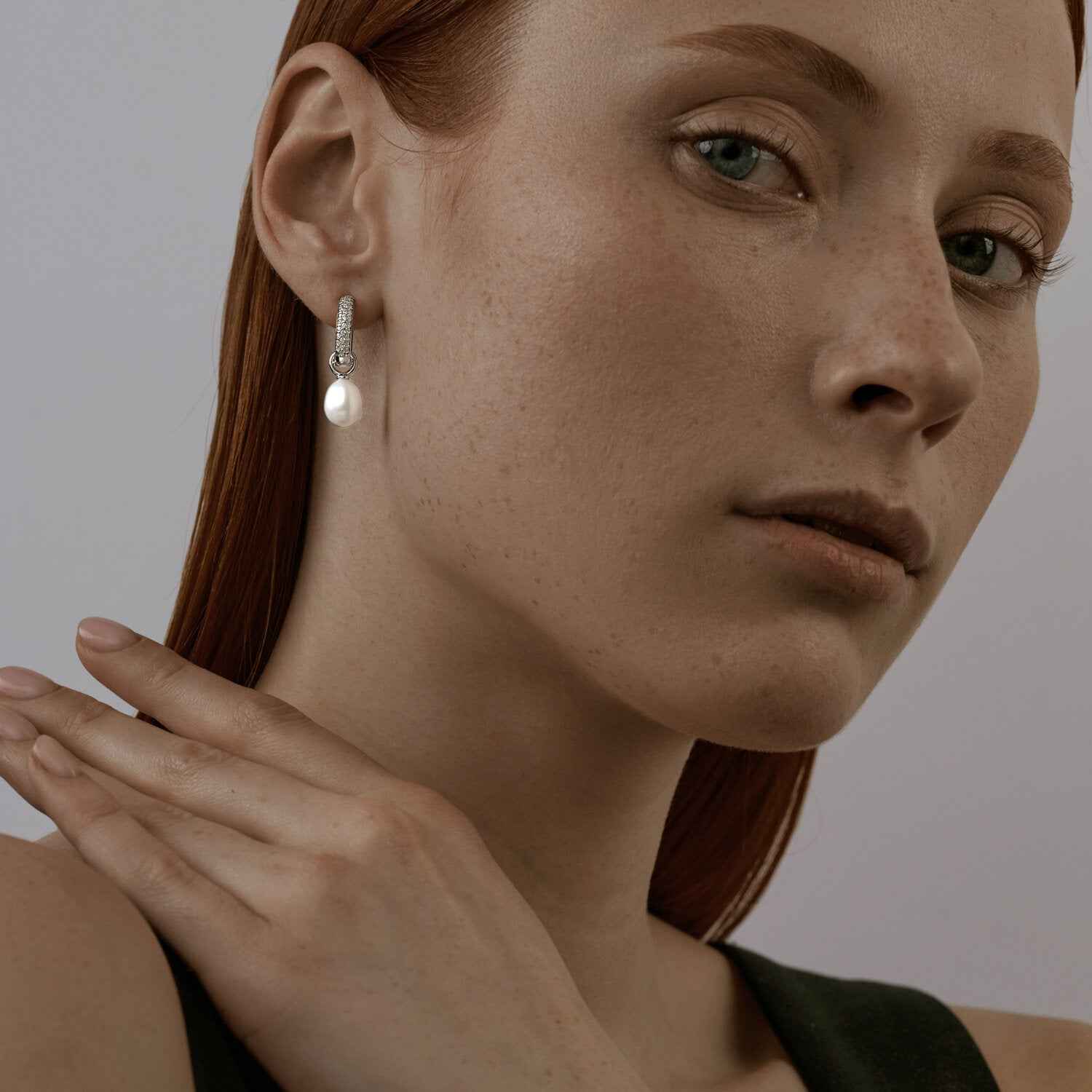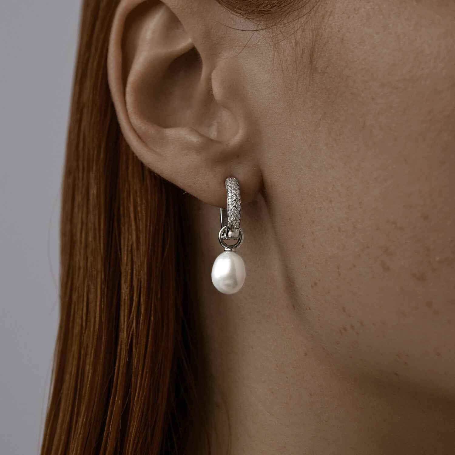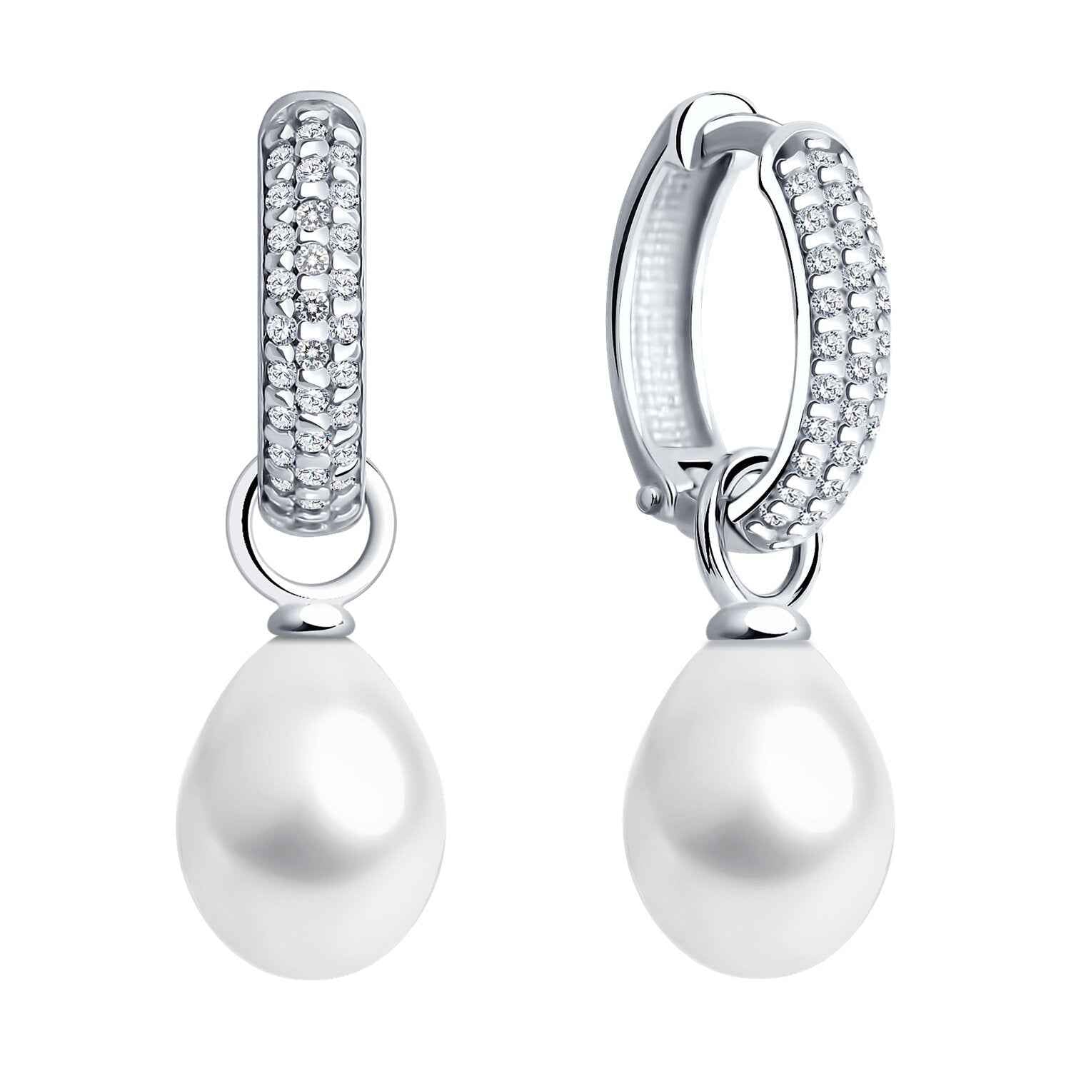 Елегантни сребърни обеци с натурални перли на бранда Sokolov. Един класически модел с безупречна изработка, който се трансформира на малки обеци халки с цирконии (перлата е подвижна).