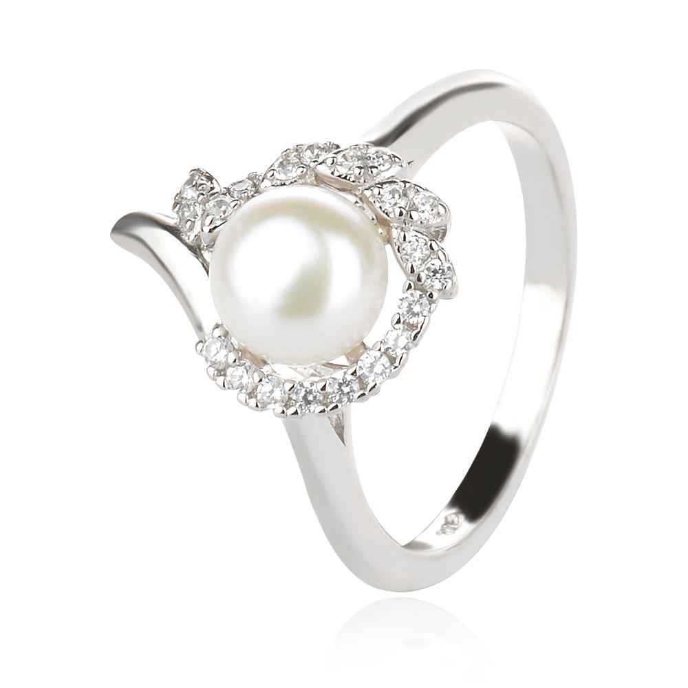 Сребърен пръстен с красив абстрактен дизайн с бяла перла и цирконий. Пръстенът е с прецизно родиево покритие, което предпазва среброто от оксидация и запазва блясъка на бижуто. Размерът е фиксиран и не подлежи на корекция.