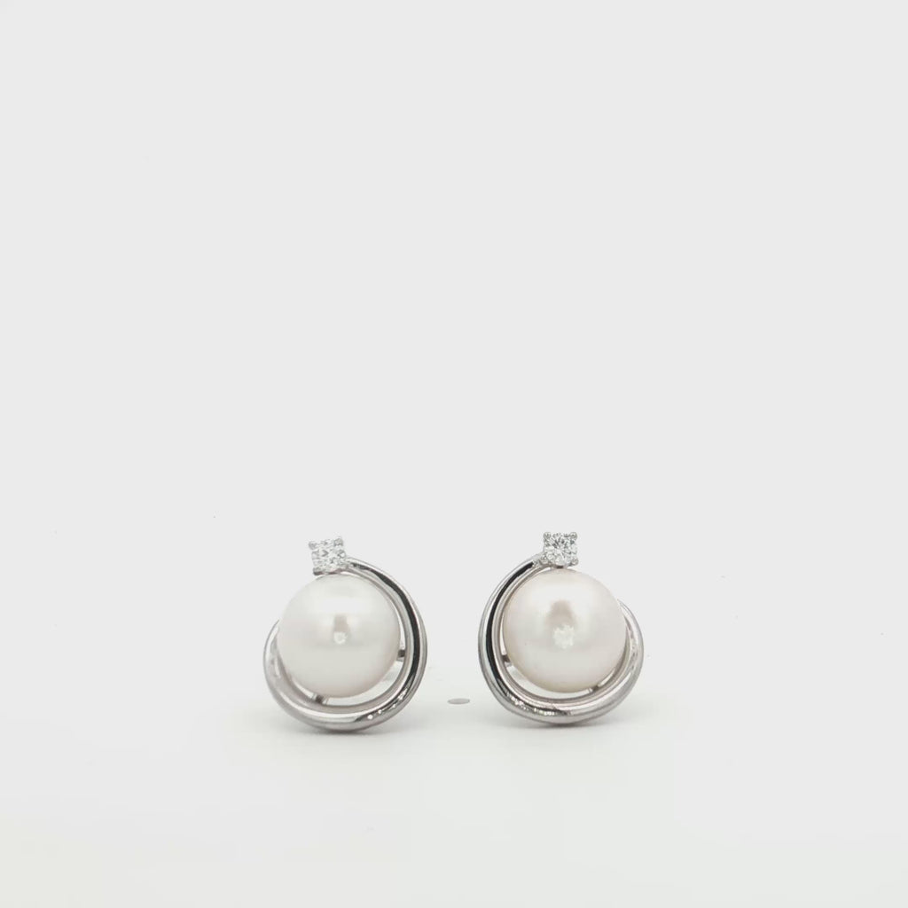 Елегантни сребърни обеци с перла и цирконий – модерна класика с родиево покритие за безупречен блясък.
