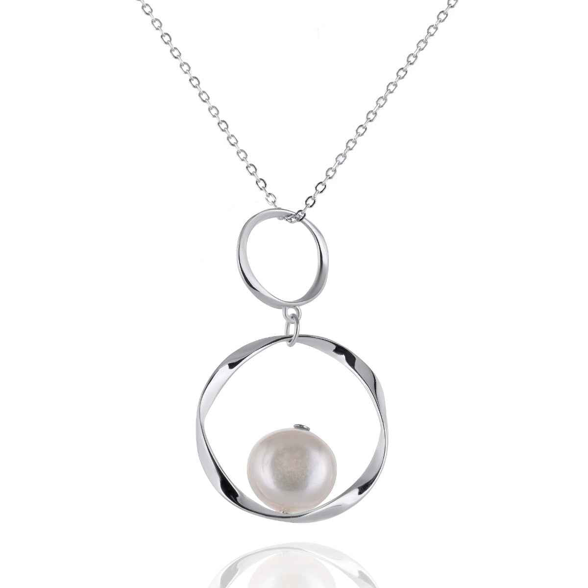 Елегантно сребърно колие с перла и модерен кръгъл дизайн – нежност и стил в едно.