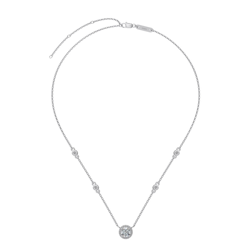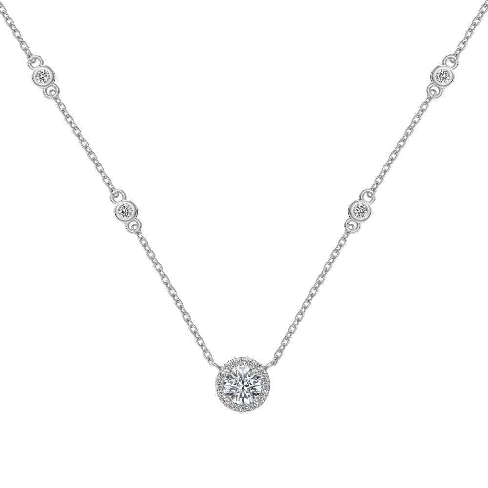 Елегантно сребърно колие със сияен централен камък и фини акценти по синджира. Модерен минимализъм с изразителен блясък.