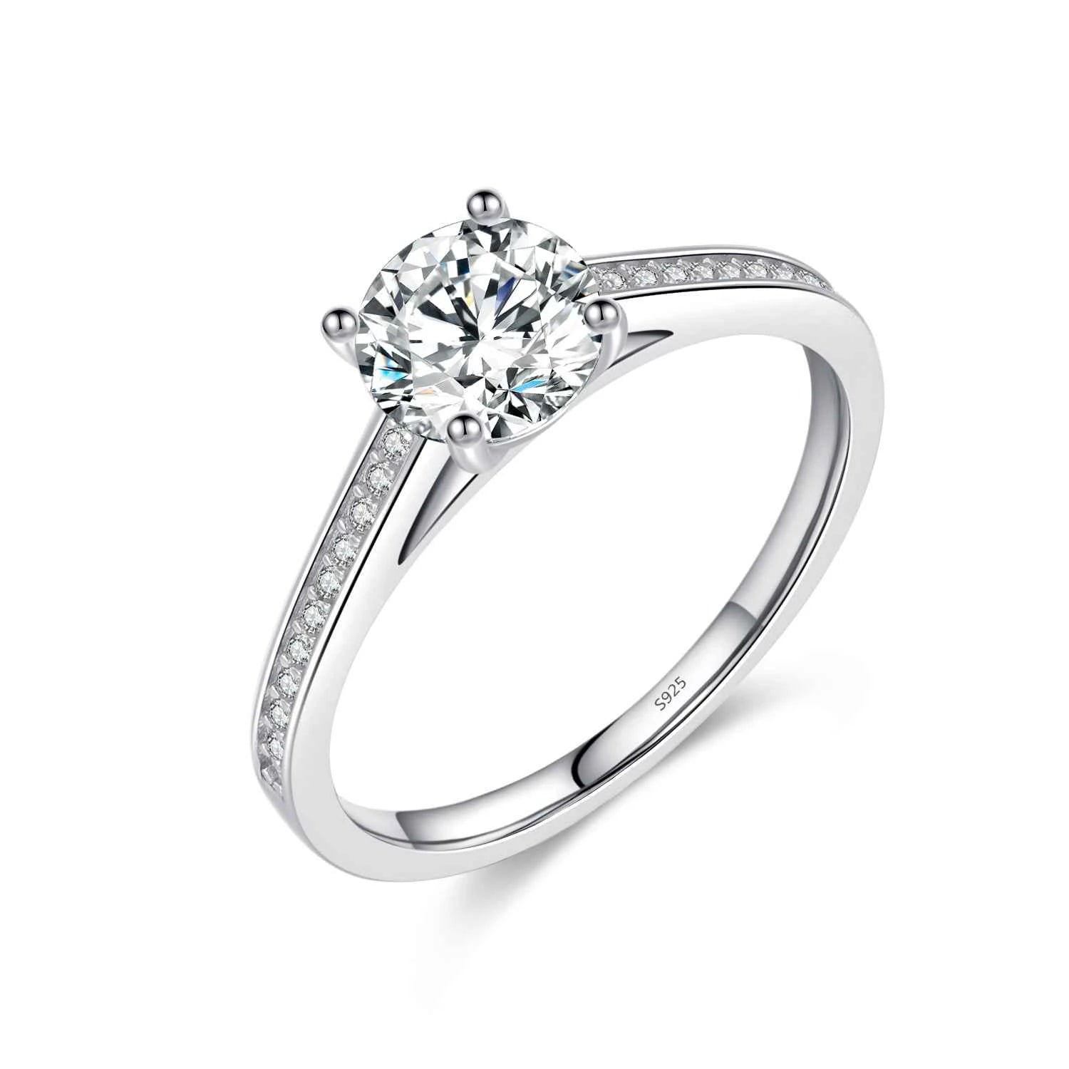 Сребърен пръстен с мойсанит солитер и цирконии по халката. Изискан, блестящ и вечен модел.