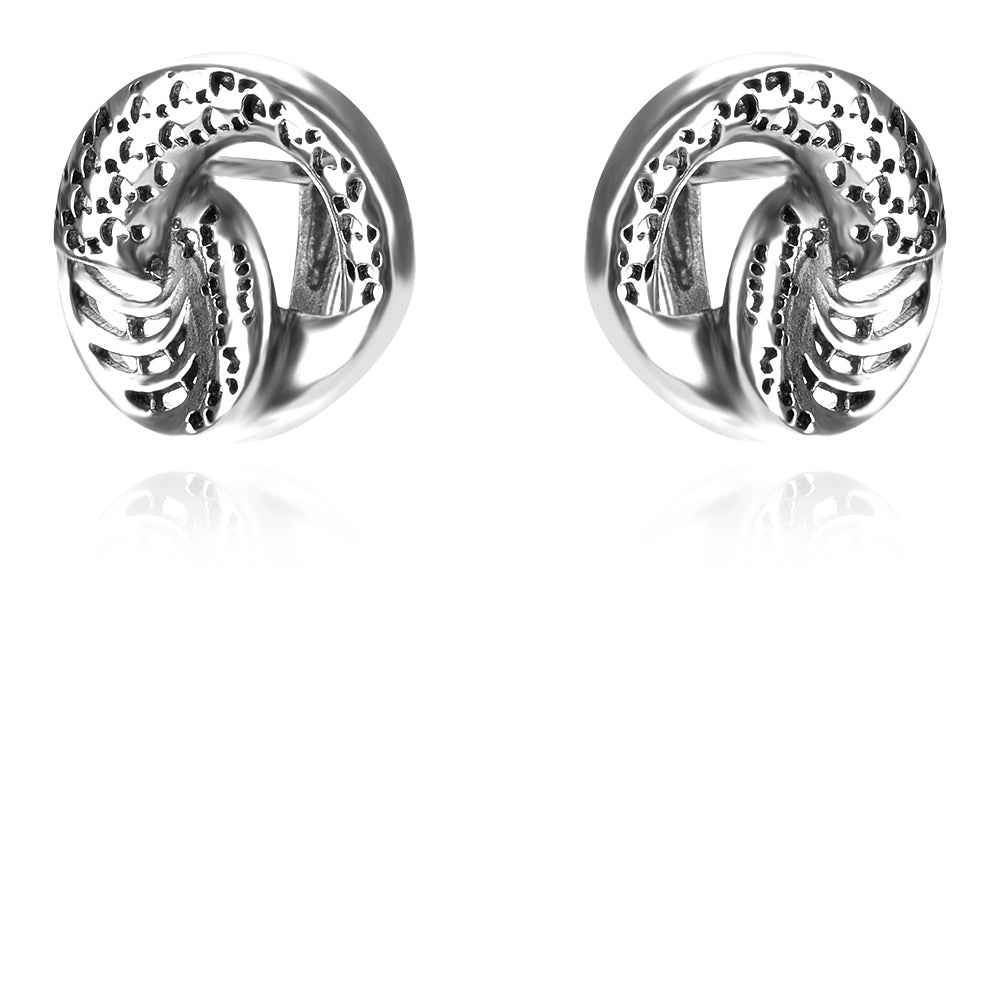 Сребърни обеци по ухото с абстрактен 3D дизайн от българската ни колекция “Алгара”??. Обеците са с оксидация, която подчертава релефните декоративни елементи. Удобно английско закопчаване.