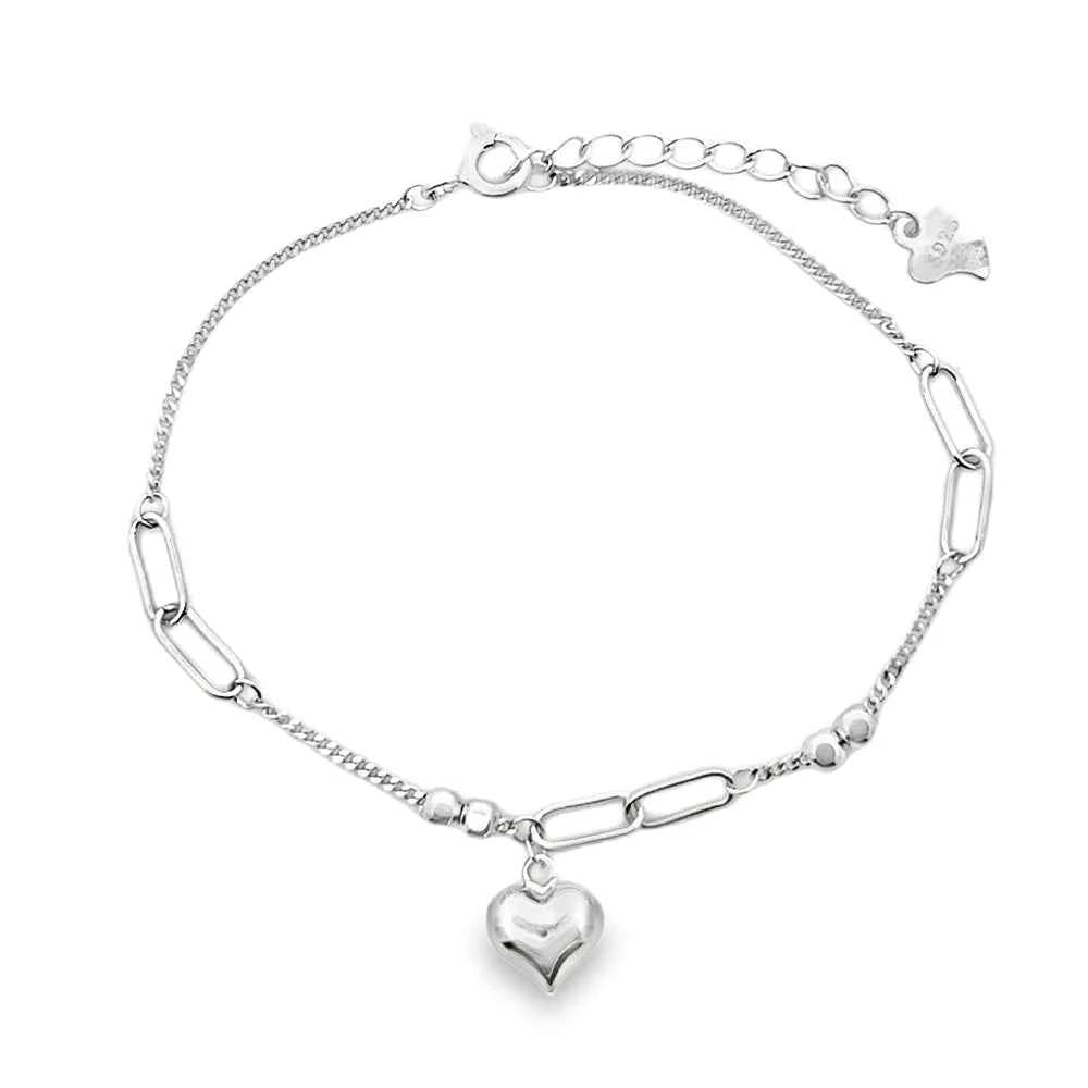Фина и игрива, тази гривна е изработена от сребро проба 925 и съчетава два типа верижка за по-интересна текстура. Акцентът е полирано обемно сърце – деликатен, но запомнящ се детайл. Регулируема дължина за комфорт и стил всеки ден.