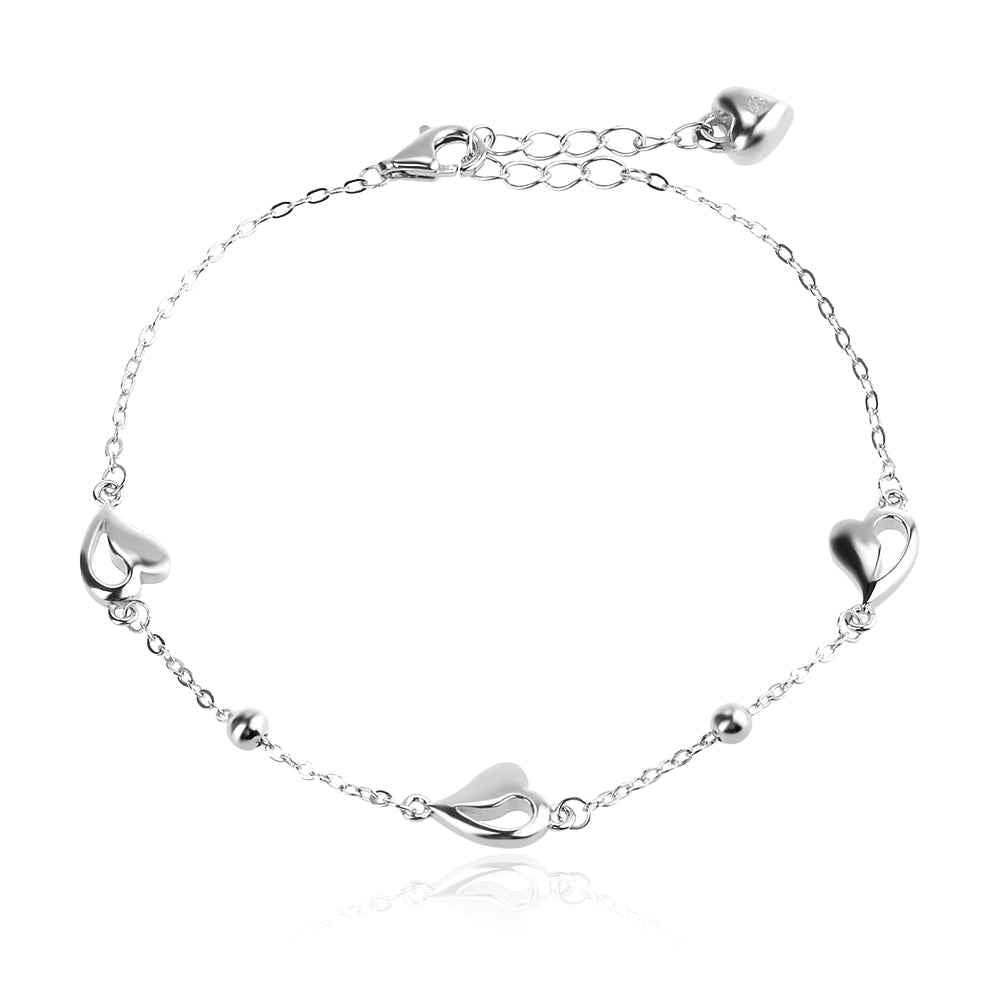 Нежна сребърна гривна със сърца.