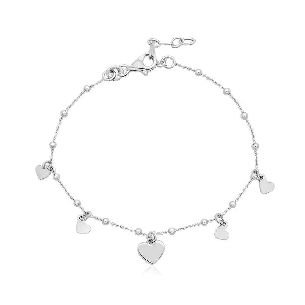 Нежна сребърна гривна с мини сърца – модерна, лека и идеална за ежедневно носене.