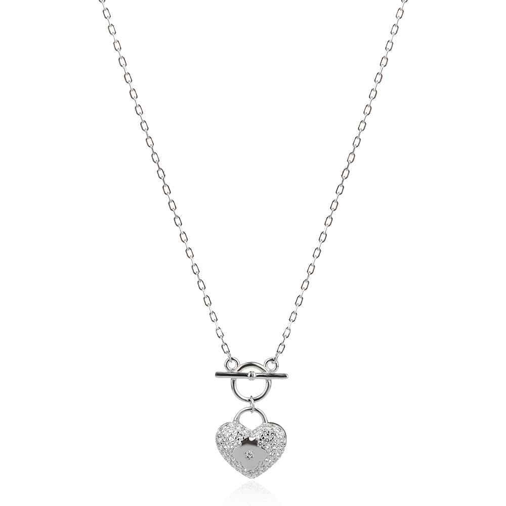 Сребърно колие със сърце, обсипано с цирконии. Прецизно родиево покритие предпазва среброто от оксидация и запазва блясъка на бижуто.