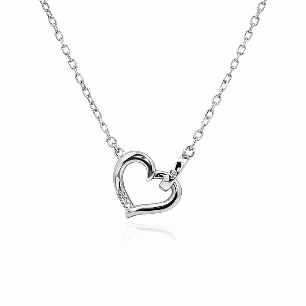Kолие със сърце от сребро 925 с родиево покритие и цирконий.