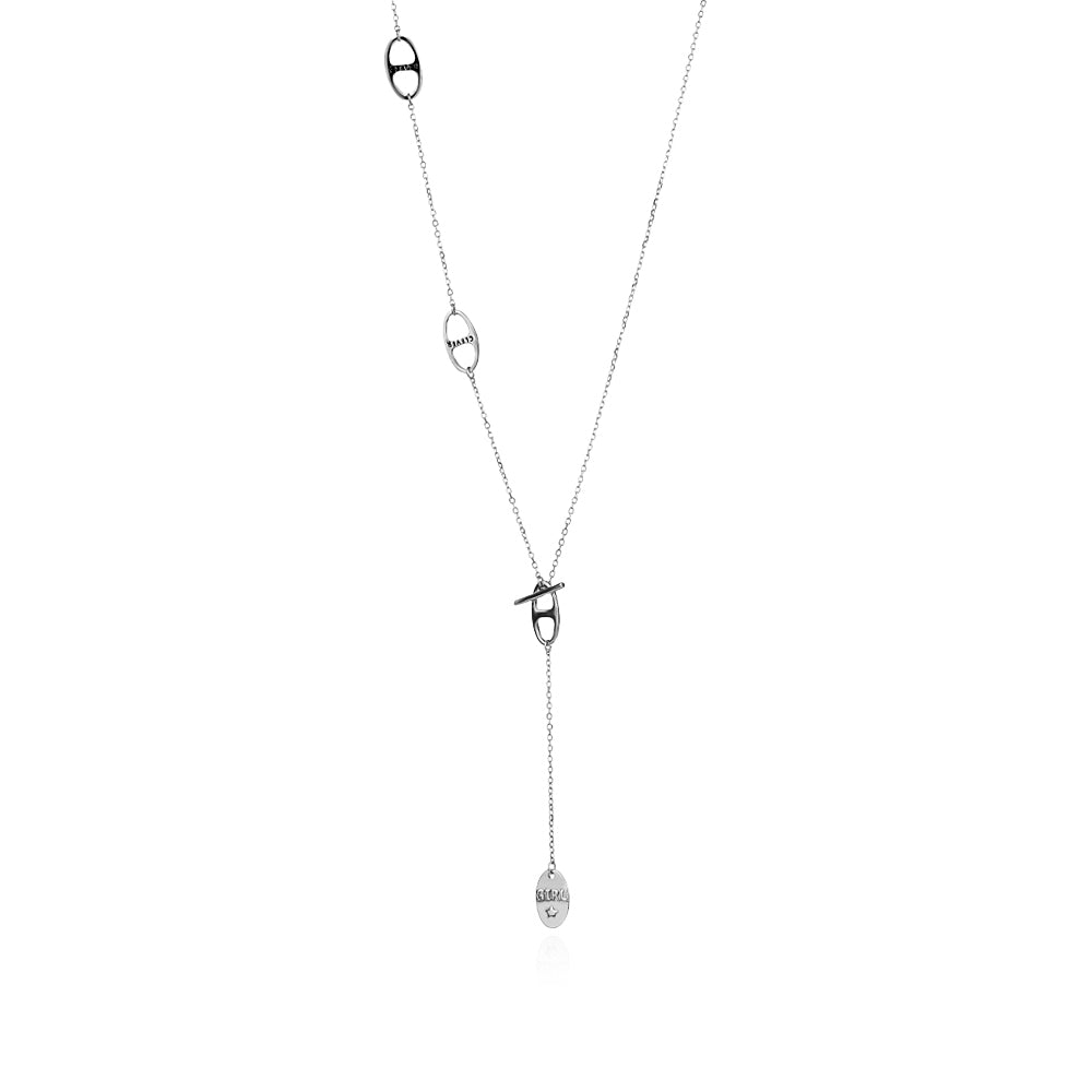 Финото синджирче с родиево покритие запазва метала от оксидация и гарантира огледален блясък дълго време. Благодарение на няколко дискретно вградени халкички в елементите, дължината може да се фиксира на различни височини.
