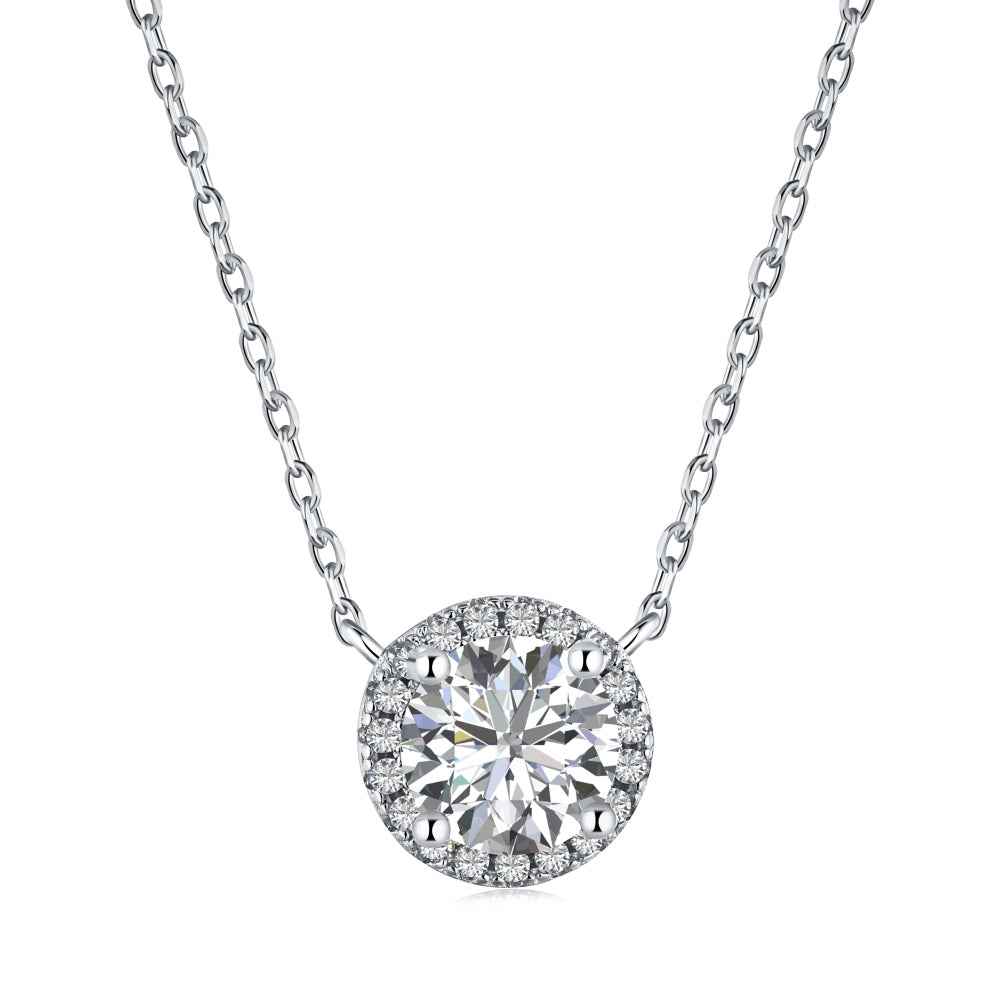 Сребърно колие Luna Halo с централен цирконий и ореол от фини камъни — модерна, сияйна класика за всеки повод.