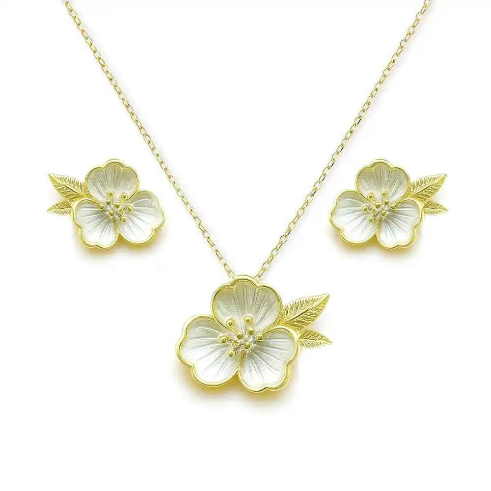 Сребърен комплект с позлата и цветя – нежна среща между изкуството и природата.