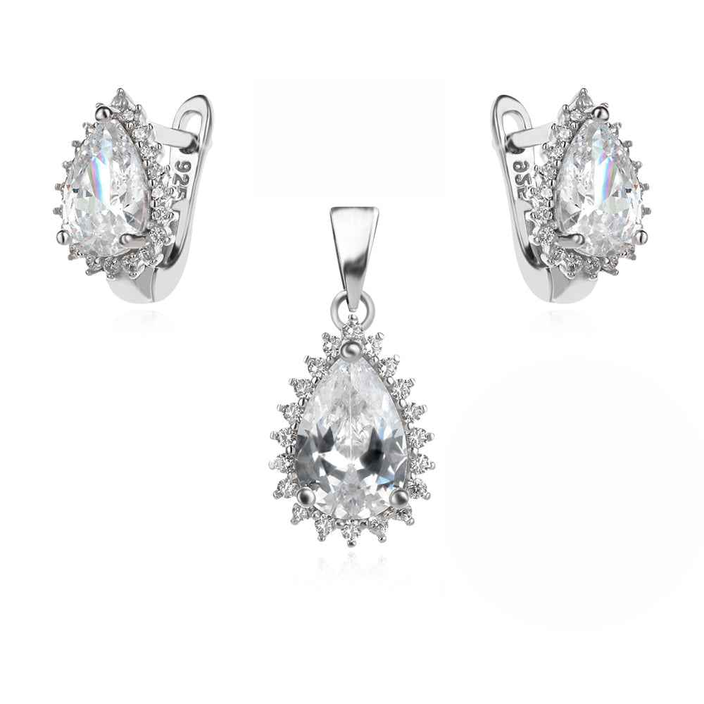 Сребърен комплект от обеци и медальон с бял кубичен цирконии капка – перфектен начин да добавите деликатен блясък към вашата визия. Бижуто е идеален избор за специални събития, парти или просто за подчертаване на вашата ежедневна елегантност. Обеците са с удобно английско закопчаване.