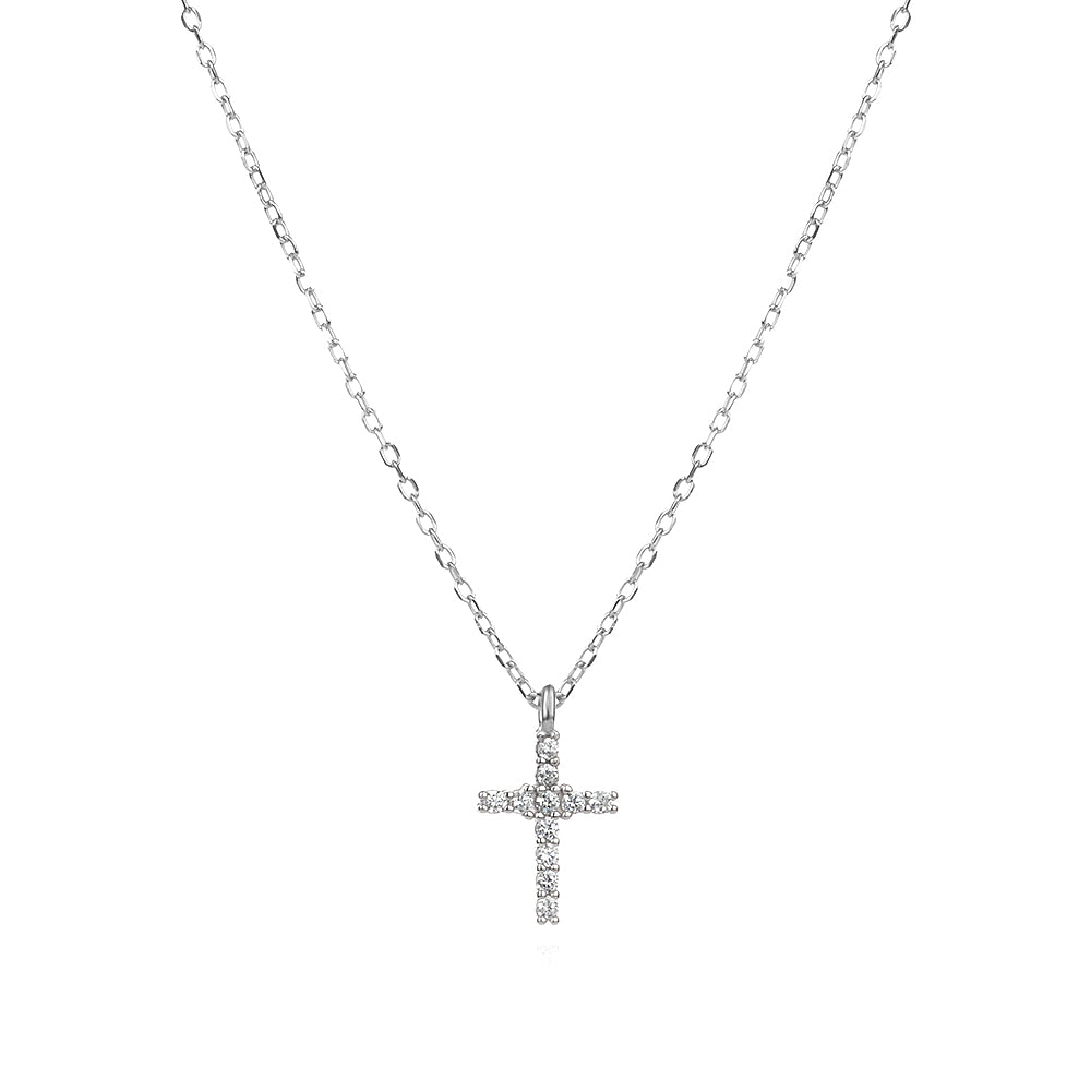 Сребърно колие с малко класическо кръстче с цирконии на късо гъвкаво синджирче. Деликатно бижу, символ на вяра, духовност и божествена защита. Бижуто е с прецизно родиево покритие, което предпазва среброто от оксидация и запазва блясъка на бижуто.