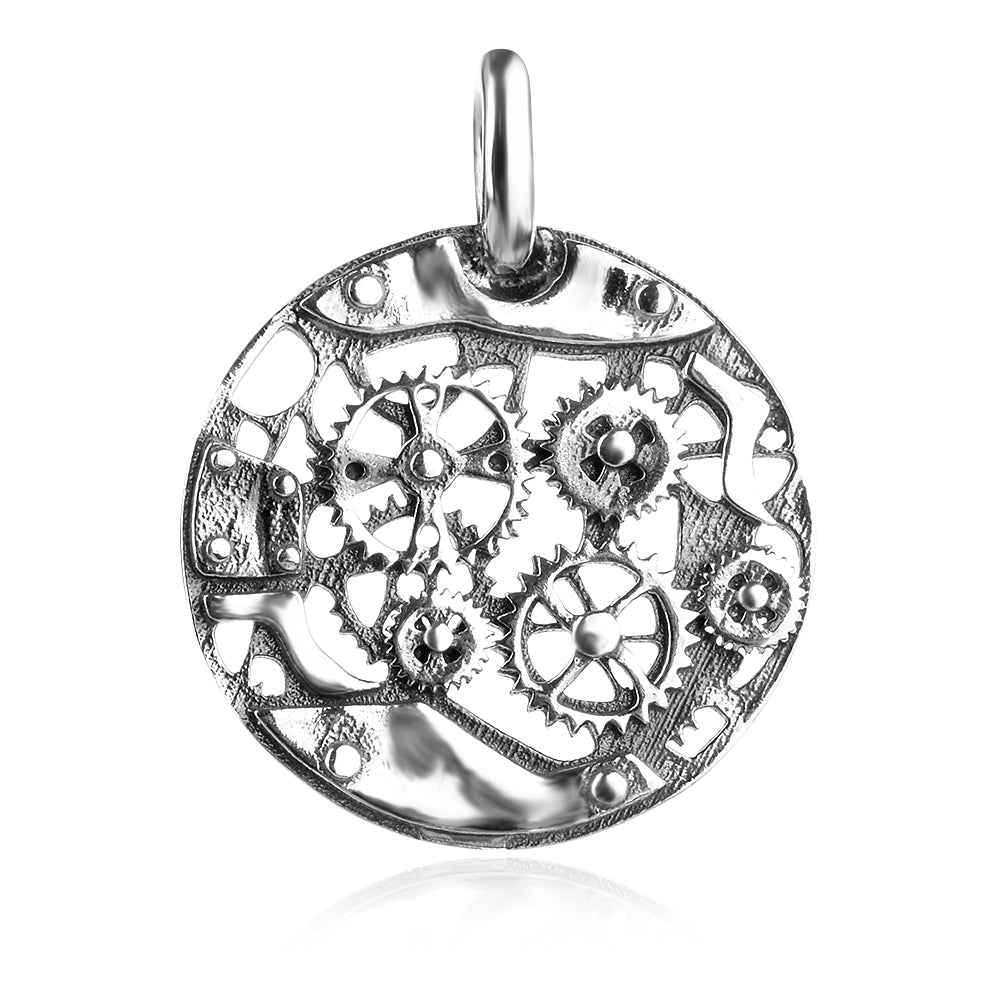 Кръгъл сребърен медальон в стил steampunk, част от българската ни колекция “Алгара”??. Медальонът е с оксидация, която подчертава релефните декоративни елементи. Комбинира се добре с оксидиран или родиран синджир.