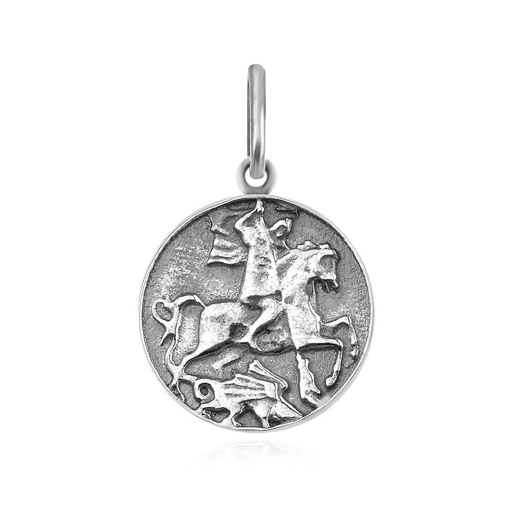 Малък сребърен медальон с абстрактно изображение на Свети Георги. Медальонът е с оксидация, която подчертава релефните елементи.