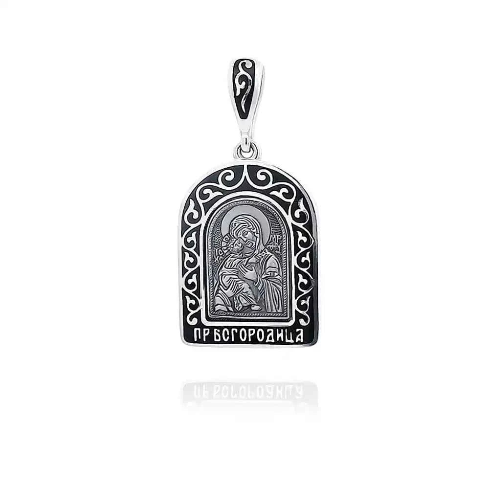Сребърен медальон икона Пресвета Богородица с Младенеца – символ на закрила и майчина любов. Изящна изработка от сребро 925, идеален подарък за вяра и подкрепа.