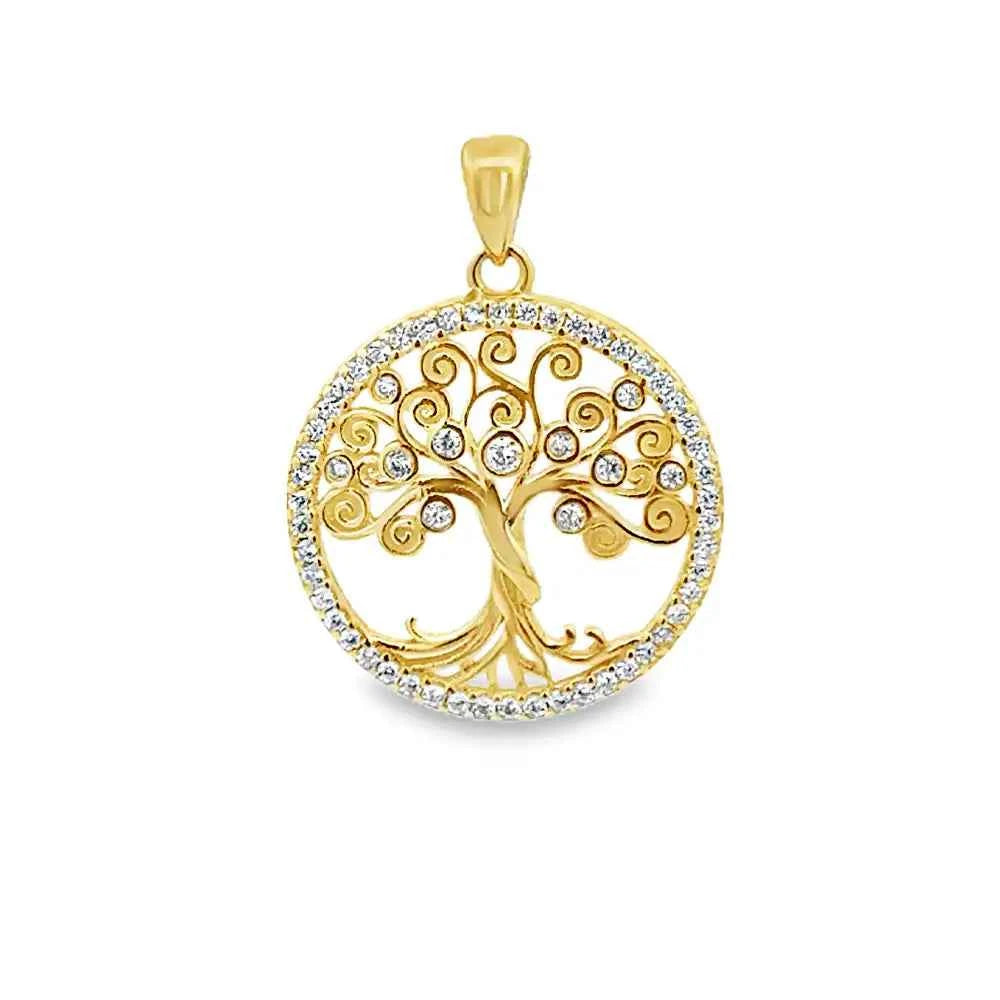 Сребърен медальон „Дървото на живота“ с позлата, изящна орнаментика и блестящи цирконии. Символ на сила, хармония и ново начало.