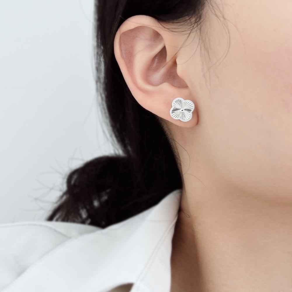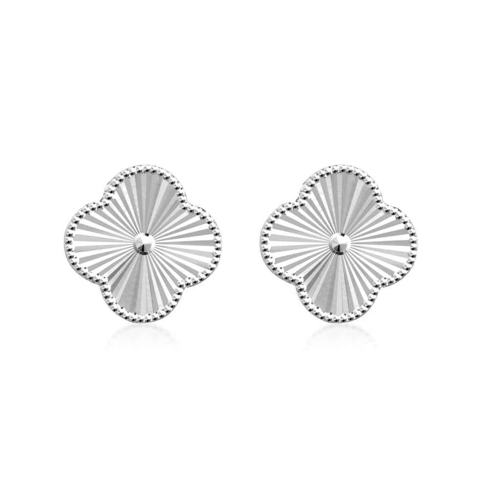 Сребърни обеци със стилизиран флорален мотив, лазерна обработка и прецизно родиево покритие, което предпазва среброто от оксидация. Тази вечна елегантност е вдъхновена от листата на детелината и напомня за колекциите на Van Cleef & Arpels. Комбинирай със сребърно колие или гривна от същата серия за цялостна и премерена естетика. Закопчаването е на щифт.