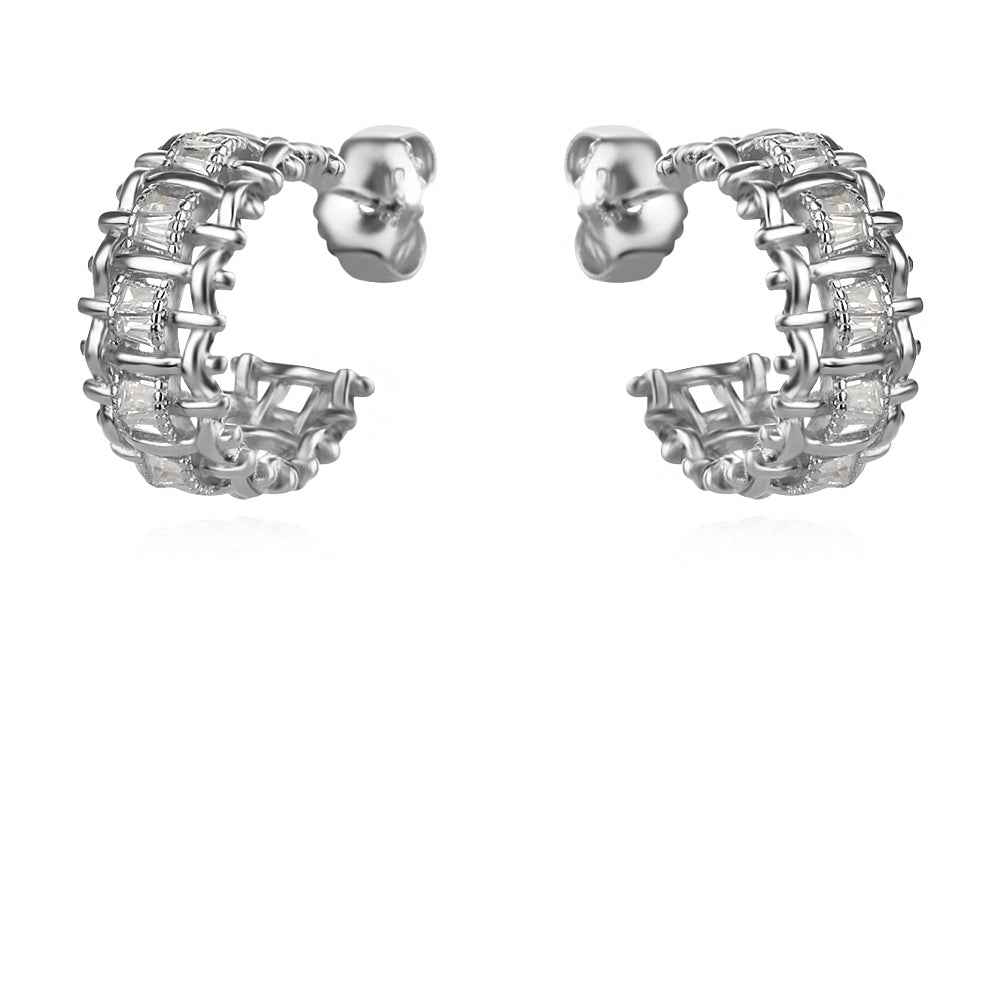 Не пазете блясъка само за специалните поводи. Тези малки, но забележими сребърни халки с цирконии, ще се превърнат в любимата ви ежедневна елегантна класика. Закопчаването е на щифт.
