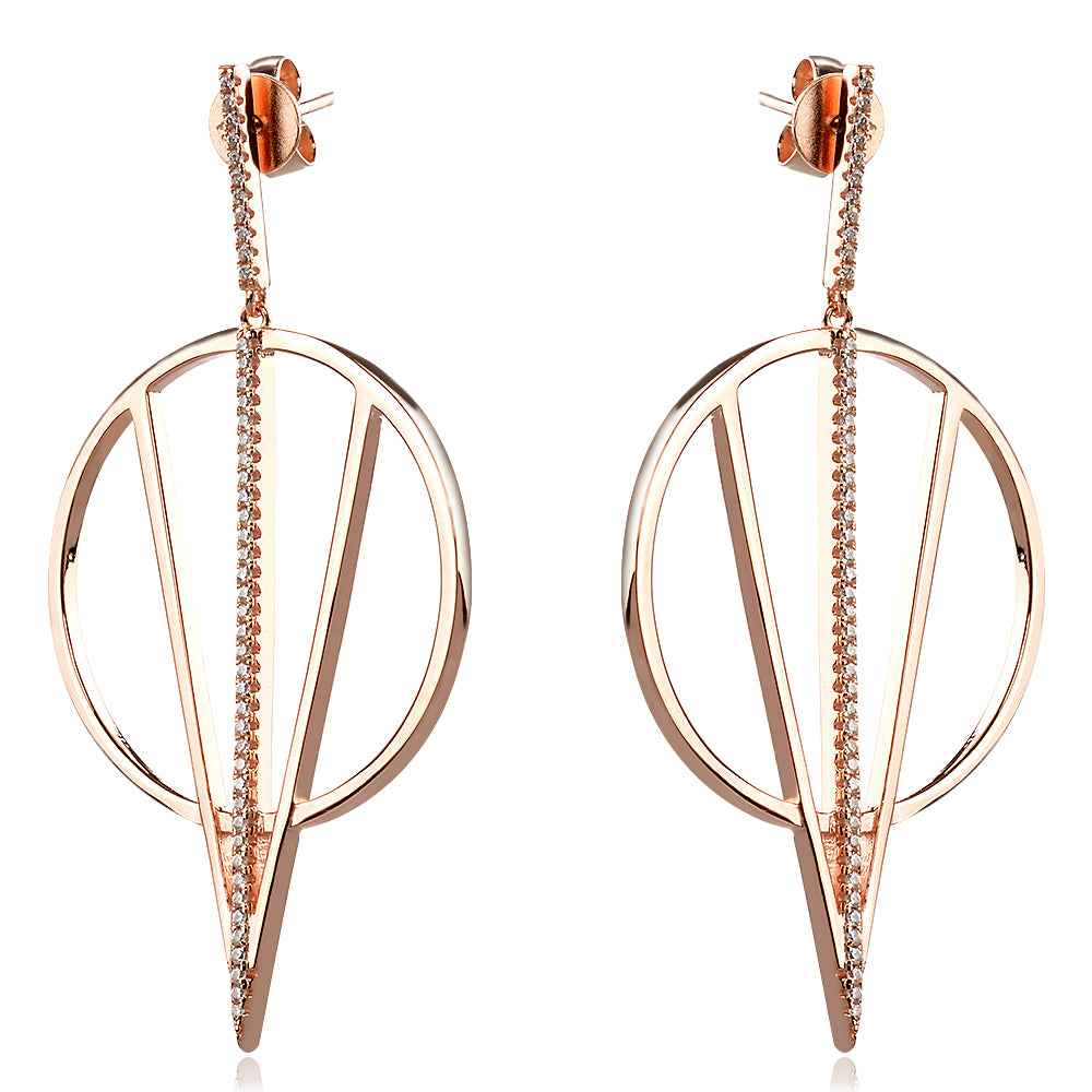 Ефектни сребърни обеци с розова позлата и цирконий. Нестандартната форма е страхотно допълнение към шик празнична визия. Закопчаването е на щифт.