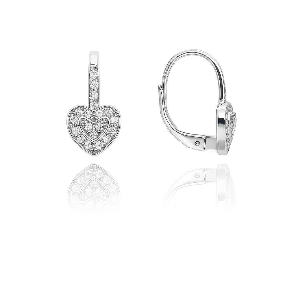 Закачливи сребърни обеци със сърца и цирконии – модерни, блестящи и винаги в центъра на вниманието.
