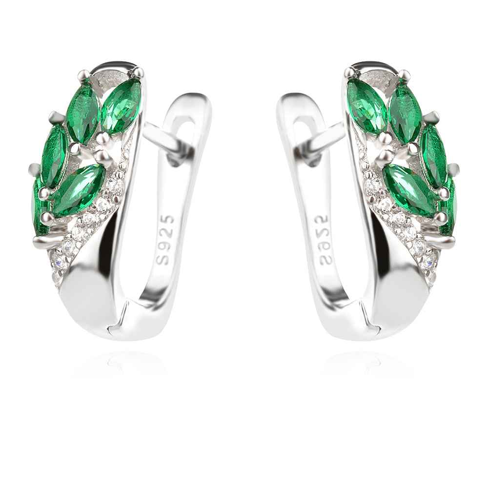 Добавете цветен щрих към визията с тези нежни сребърни изкушения с изумрудено зелени цирконии багета. Обеците са с удобно английско закопчаване и родиево покритие, което предпазва среброто от оксидация и запазва блясъка на бижуто.