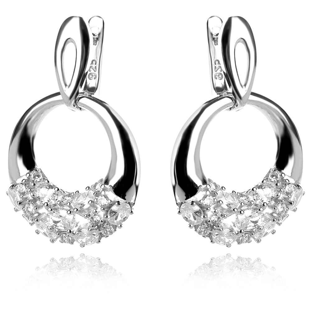Изискани сребърни обеци с цирконии, перфектна полировка и прецизно родиево покритие. Обеците са с удобно английско закопчаване.