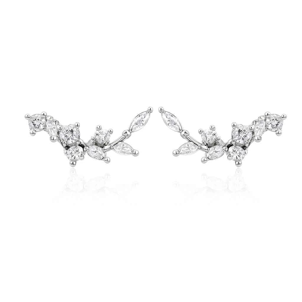 Елегантни сребърни обици с кубични цирконии и родиево покритие – модерна визия с блясък от всеки ъгъл.