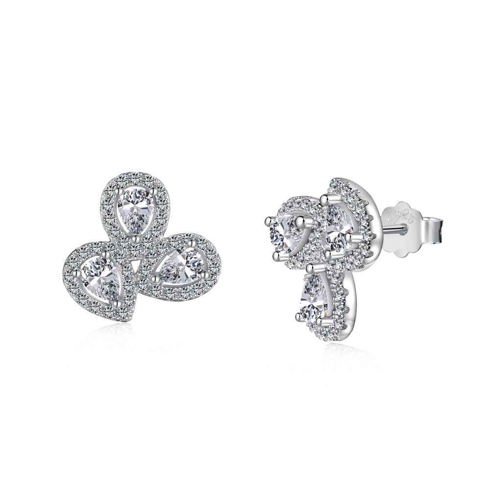 Сребърни обеци с три нежни капковидни цирконии, подредени в абстрактна форма. Модерен и артистичен акцент, който ще те накара да изпъкнеш със свежо и оригинално излъчване.