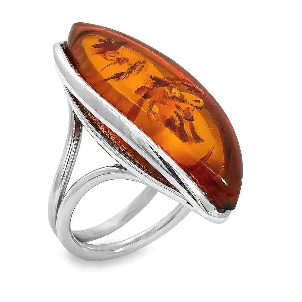 Сребърен пръстен с естествен кехлибар, който събира топлина, светлина и движение. Халката е отворена и размерът може да се коригира. Идеален акцент за минималистична визия или бохемски стил с текстури и естествени тонове. Пръстен за жени, които не се страхуват да носят изкуство.