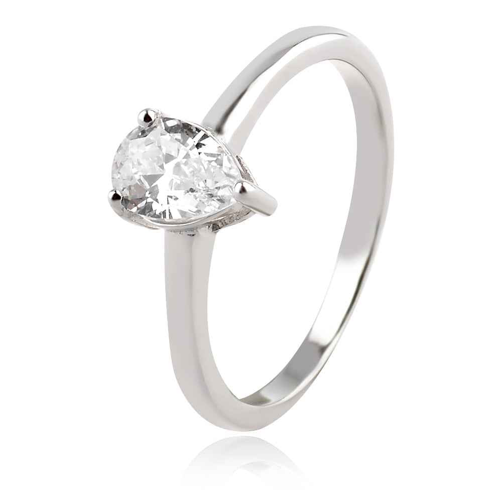 Сребърен пръстен с циркон във формата на миниатюрна капчица. Бижуто е с родиево покритие, което предпазва среброто от оксидация и гарантира бласъка му.