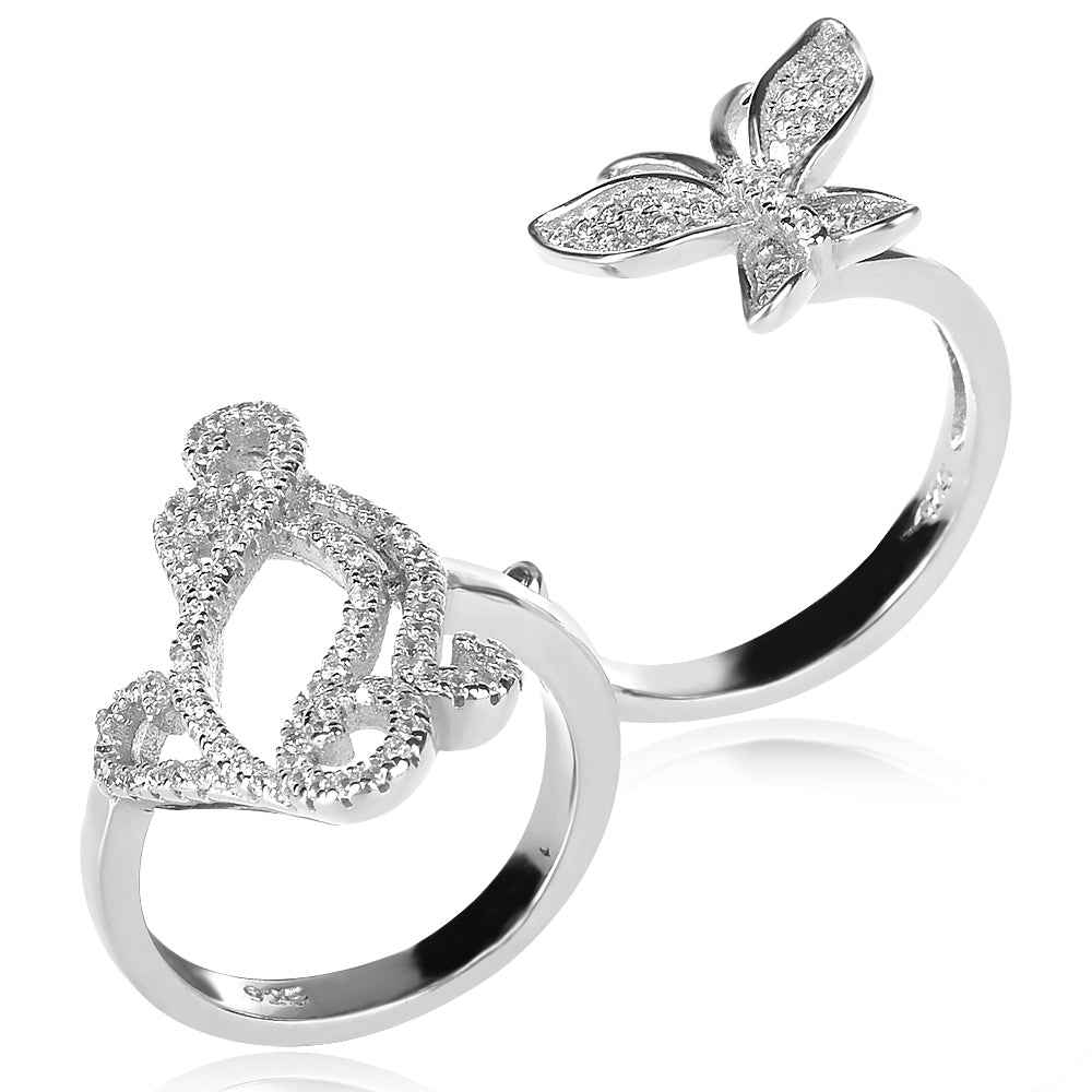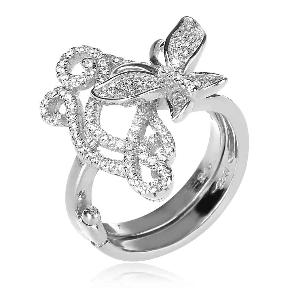 Сребърен двоен/сгъваем пръстен с пеперуда, обсипан с малки кубични цирконии. Този ювелирен трансформърс ще впечатли всеки ценител на нестандартните украшения. Пръстенът може да се носи по два начина-сгънат в пищна форма или разгънат на два съседни пръста. Прибави това фантастично бижу към колекцията си за всички онези специални моменти... :)