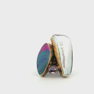 Сребърен пръстен - Opal, Baroque Pearl & Amethyst