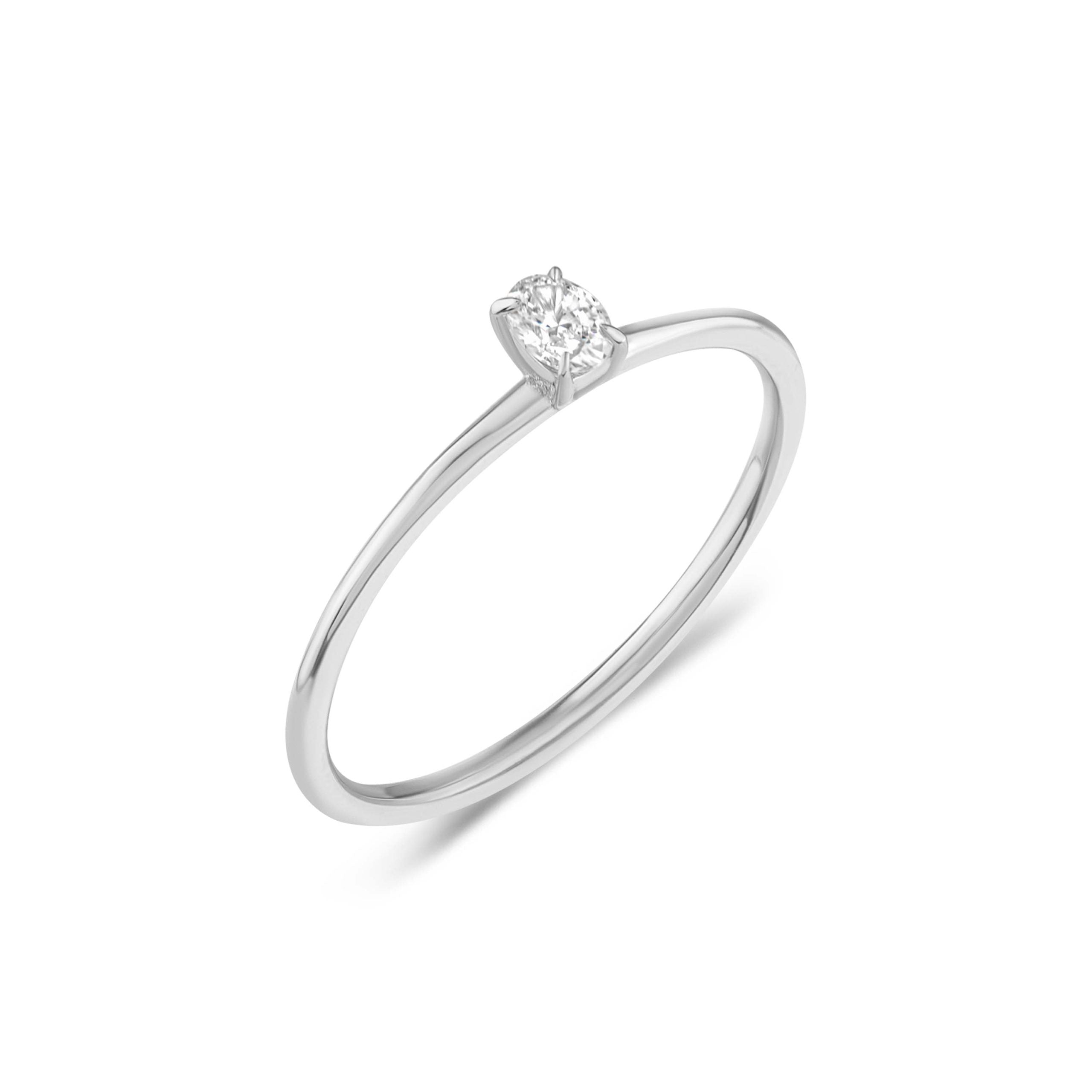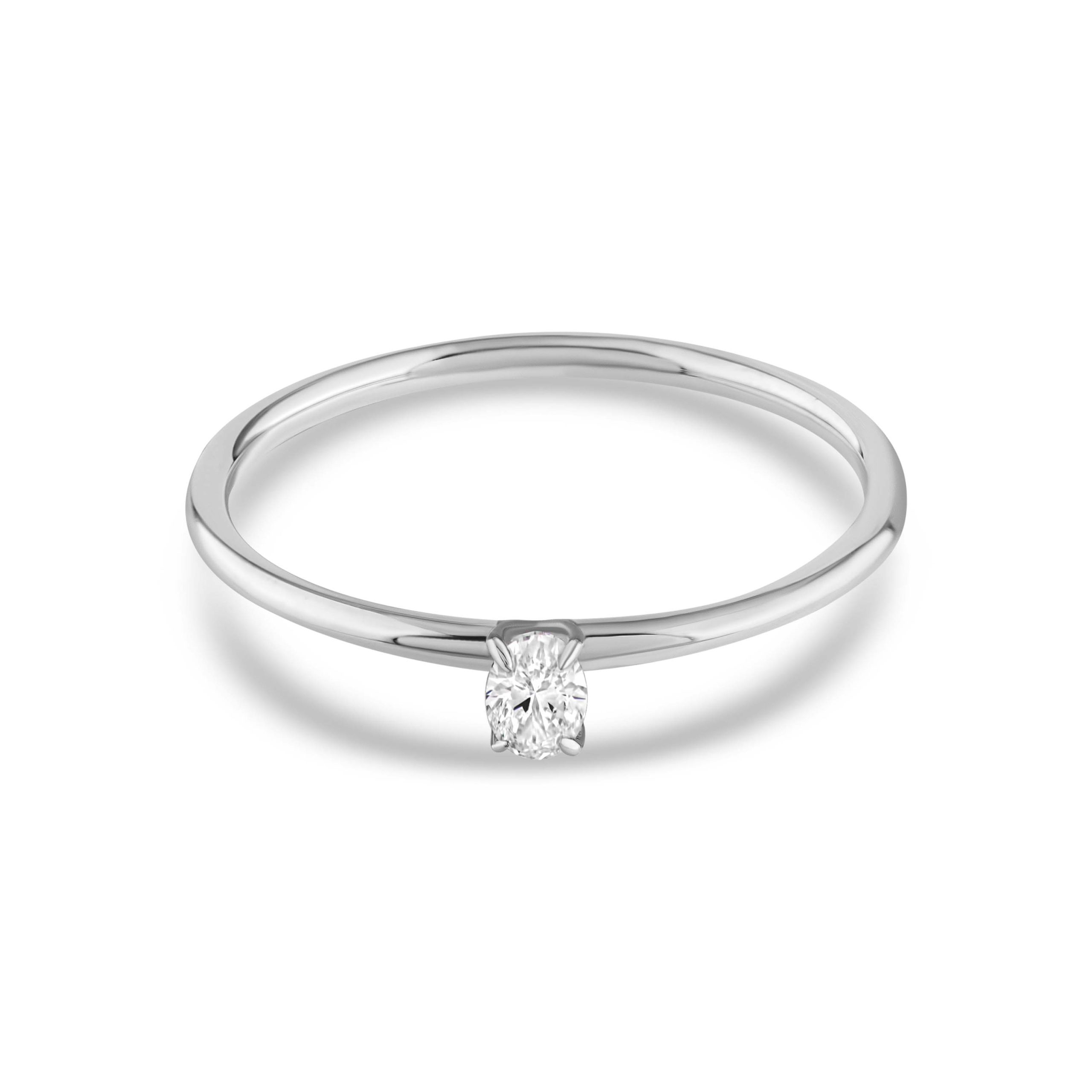 Годежен пръстен от 14K бяло злато с естествено добит диамант във форма овал. Пръстенът е наличен в размер 54 и при необходимост може да бъде коригиран в рамките на 3-4 работни дни. Първата корекция на размера е безплатна.