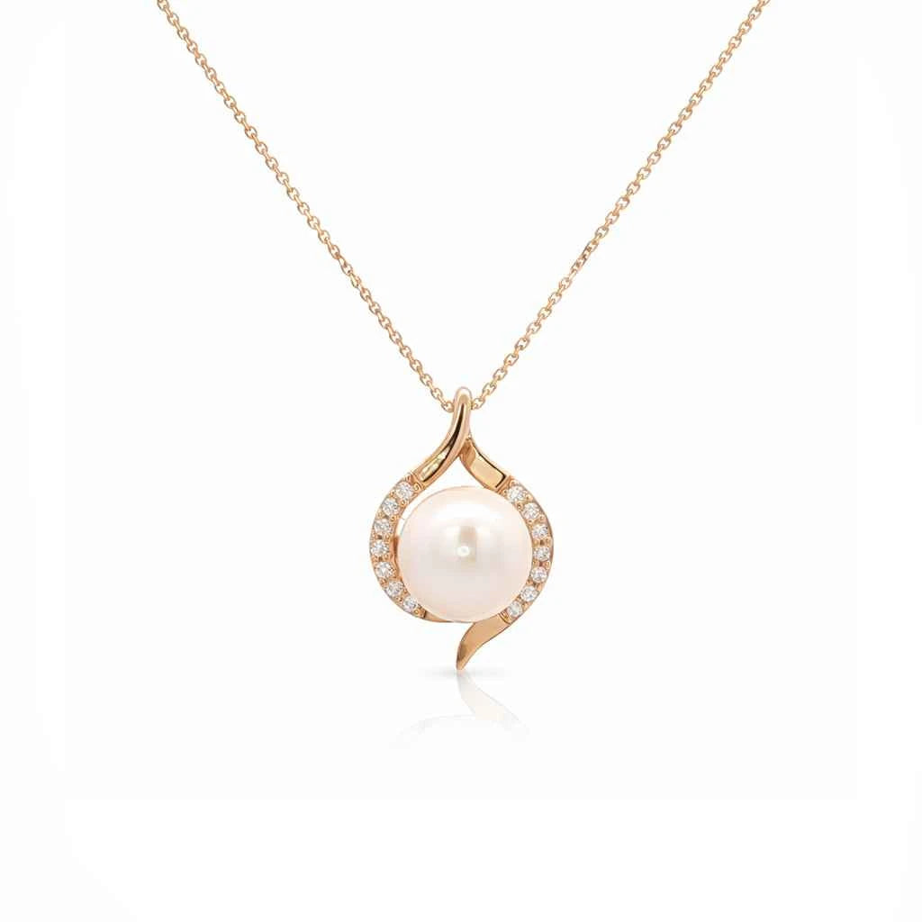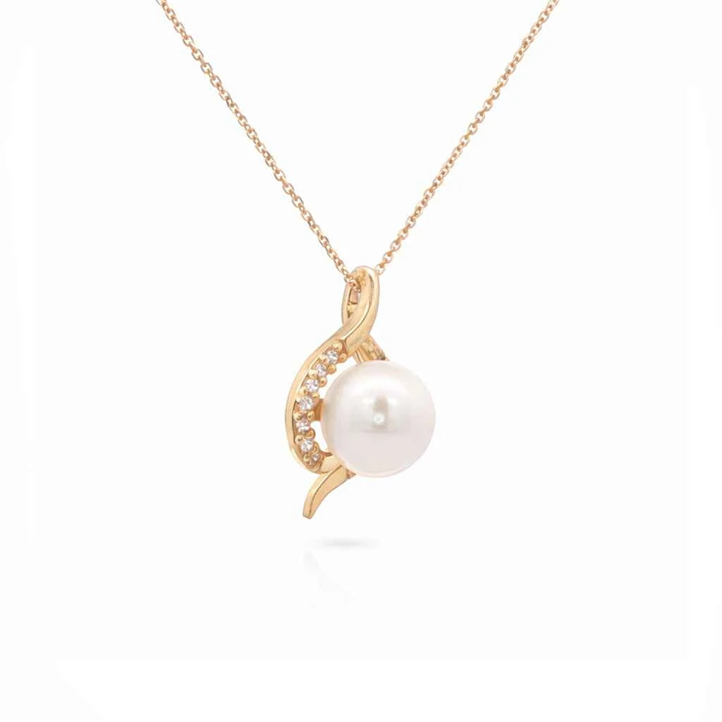 Златно колие с перла и цирконии от 14К злато – изтънчен акцент с фин блясък.