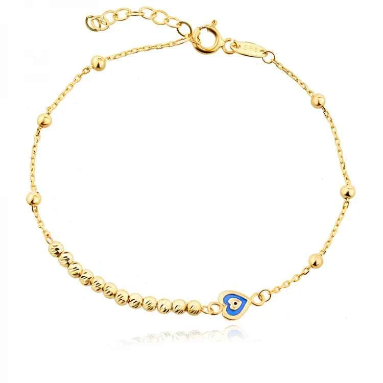 Нежна гривна от 14К злато и сърчице със син емайл – талисман за нежност и хармония.