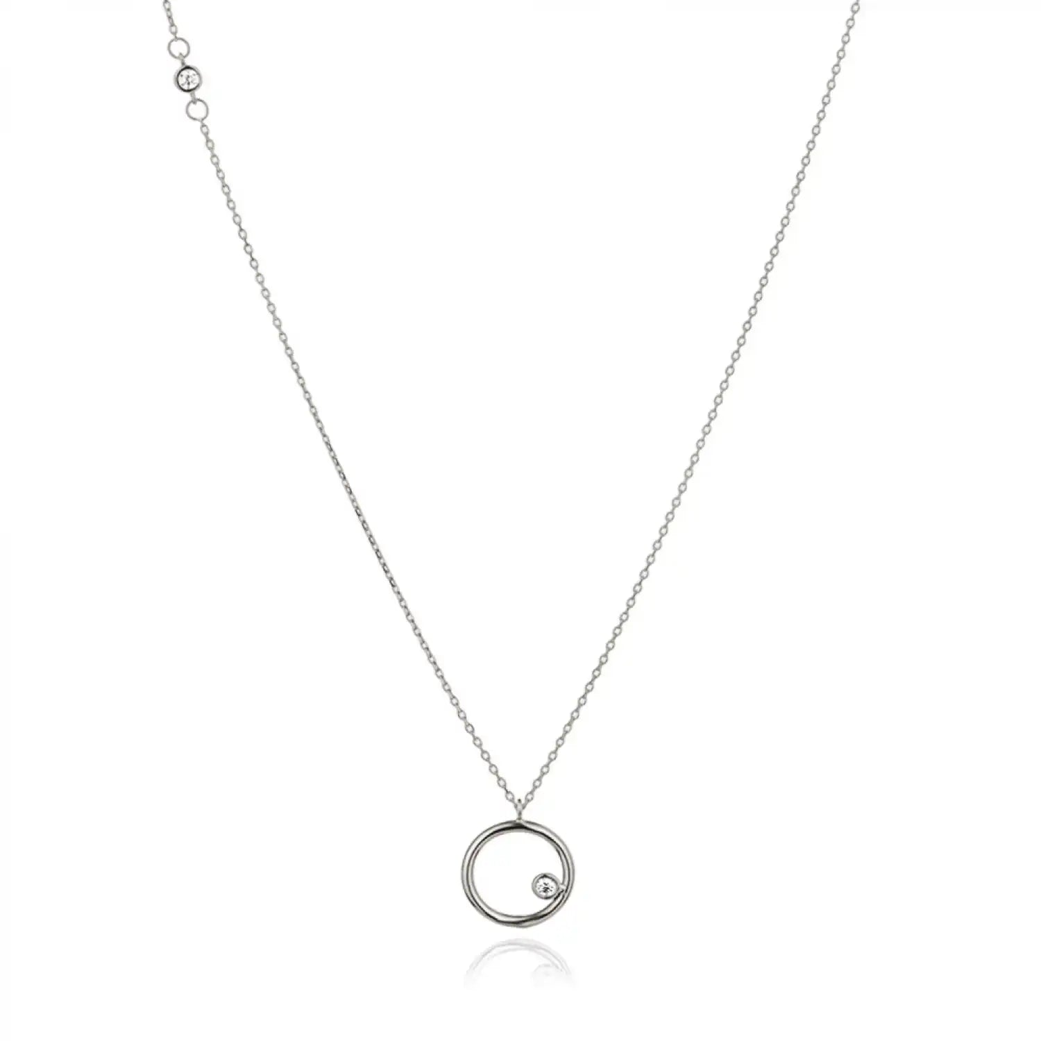 Колие от 14K бяло злато с форма на кръг и фин блясък от цирконий – безупречен съвременен минимализъм.