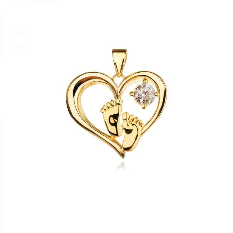 Златен медальон със сърце и бебешки стъпки – перфектен подарък за майка и символ на любов.