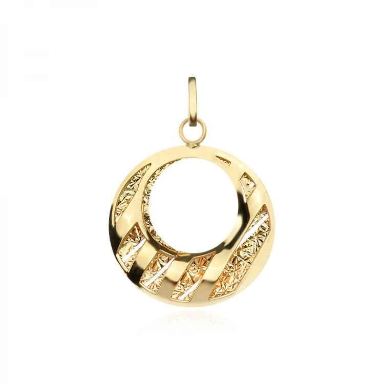 Златен медальон с модерна кръгла форма и геометричен дизайн – перфектен акцент за стилна визия.